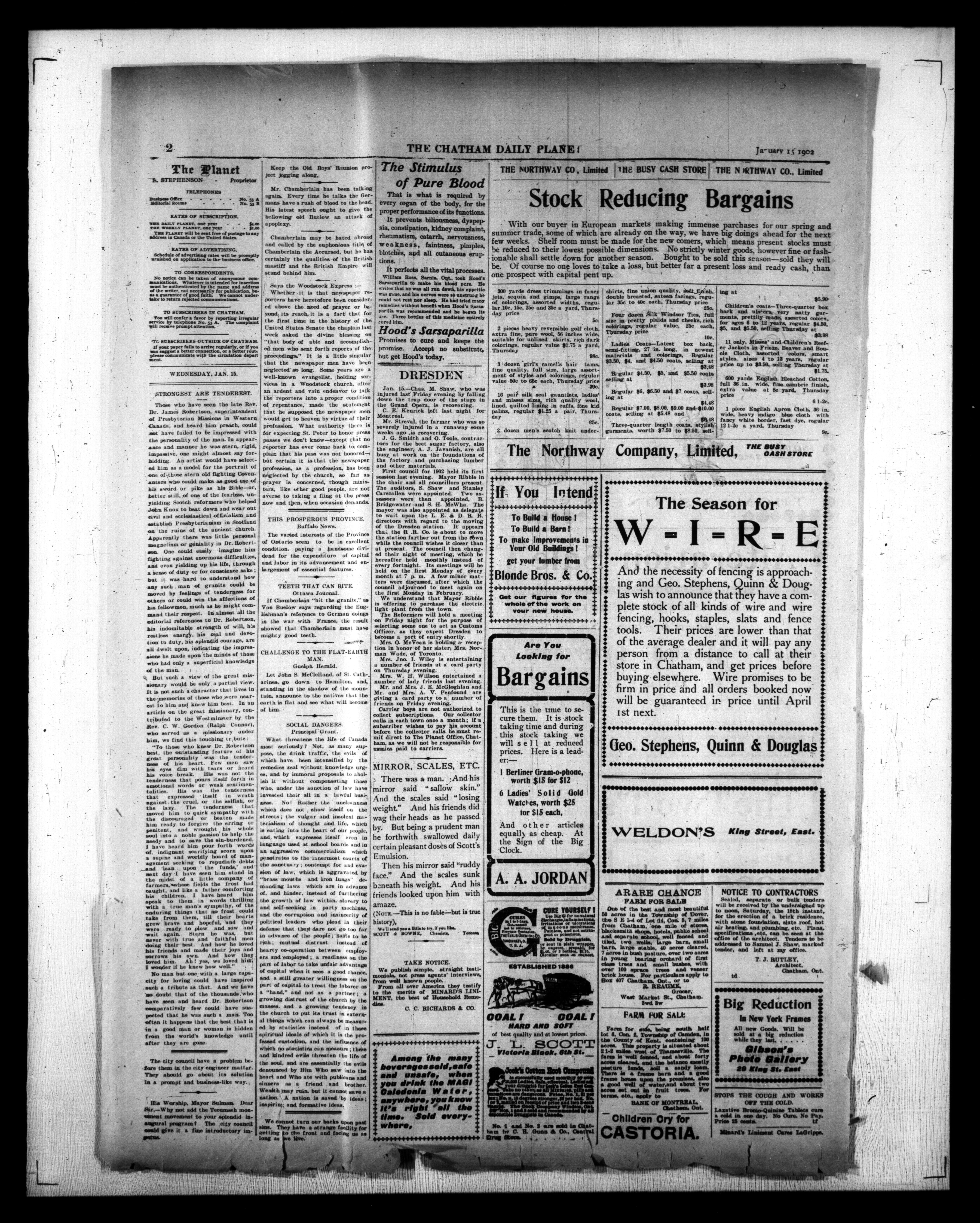 - The Chatham Daily Planet : Vol. XI, No. 28 (January 15, 1902)