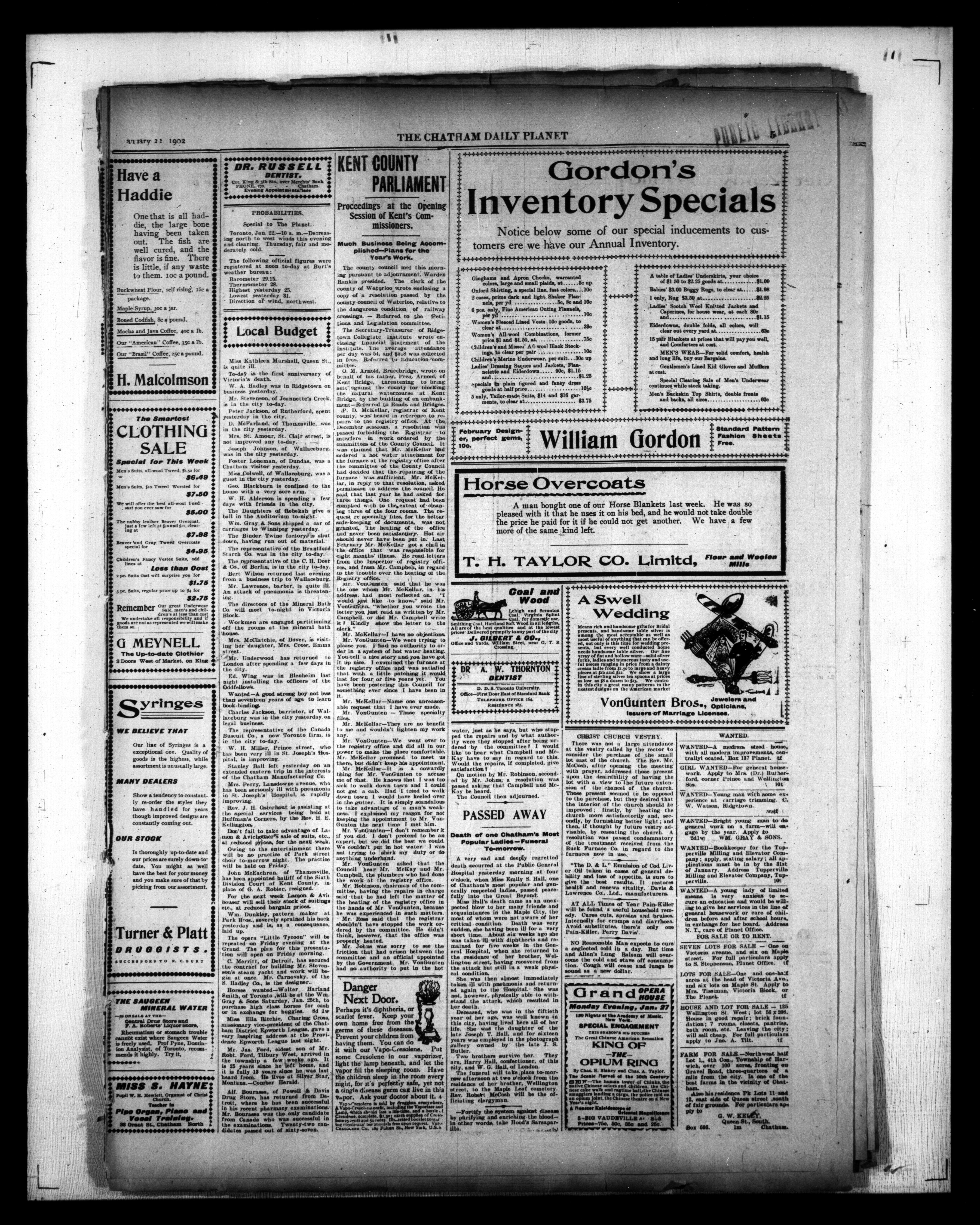 The Chatham Daily Planet. : The Chatham Daily Planet : Vol. XI, No. 34 (January 22, 1902)