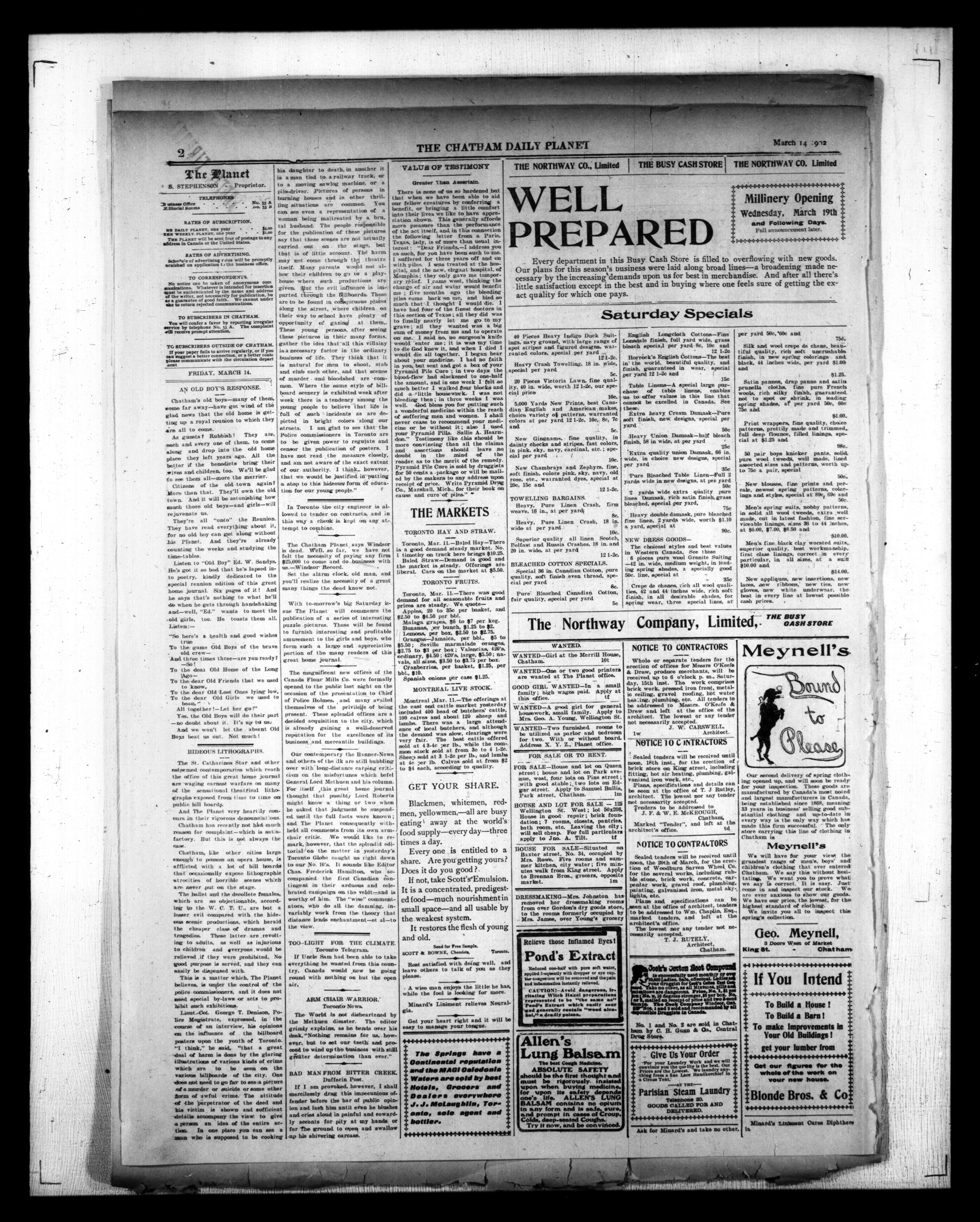 - The Chatham Daily Planet : Vol. XI, No. 78 (March 14, 1902)