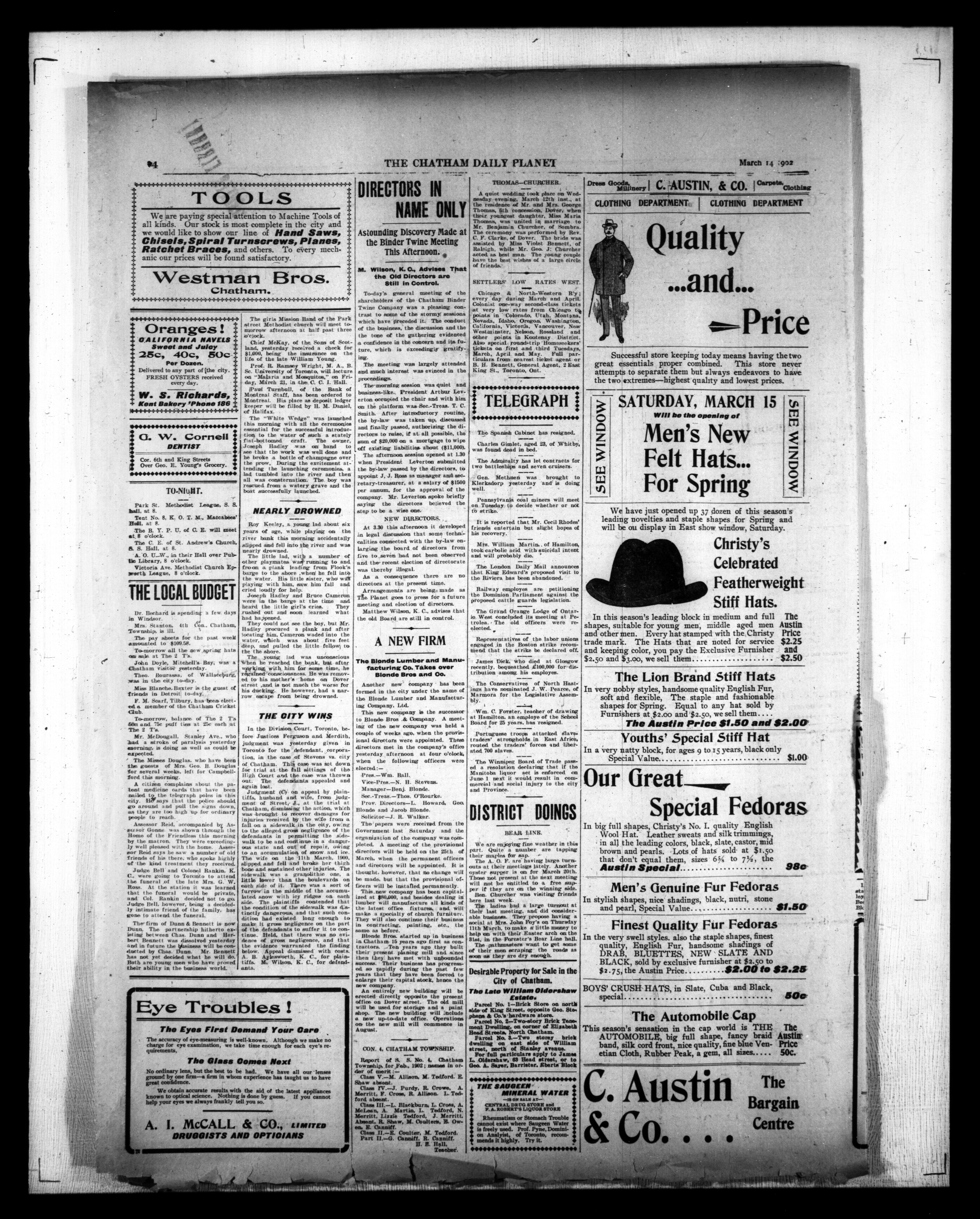- The Chatham Daily Planet : Vol. XI, No. 78 (March 14, 1902)