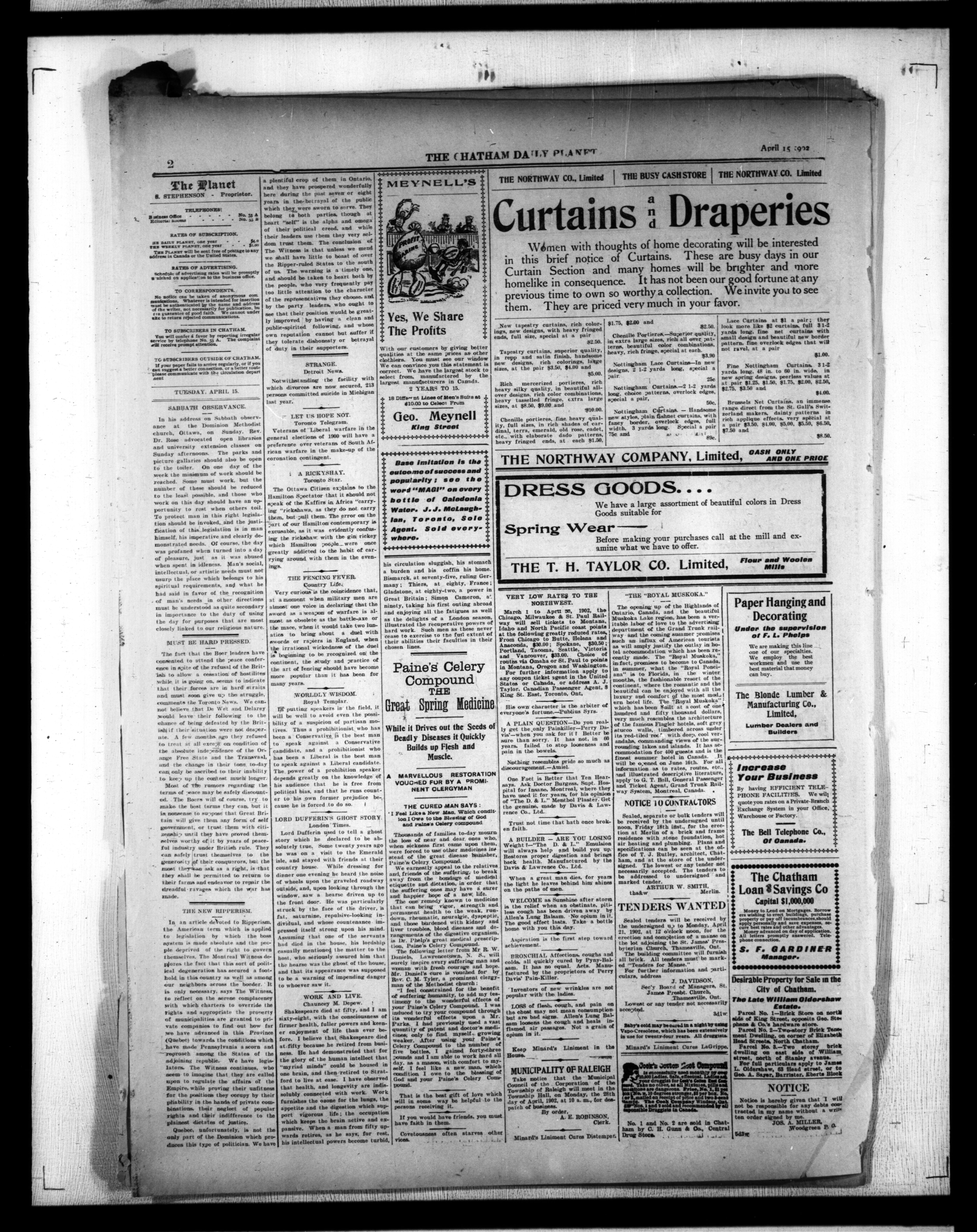 - The Chatham Daily Planet : Vol. XI, No. 105 (April 15, 1902)