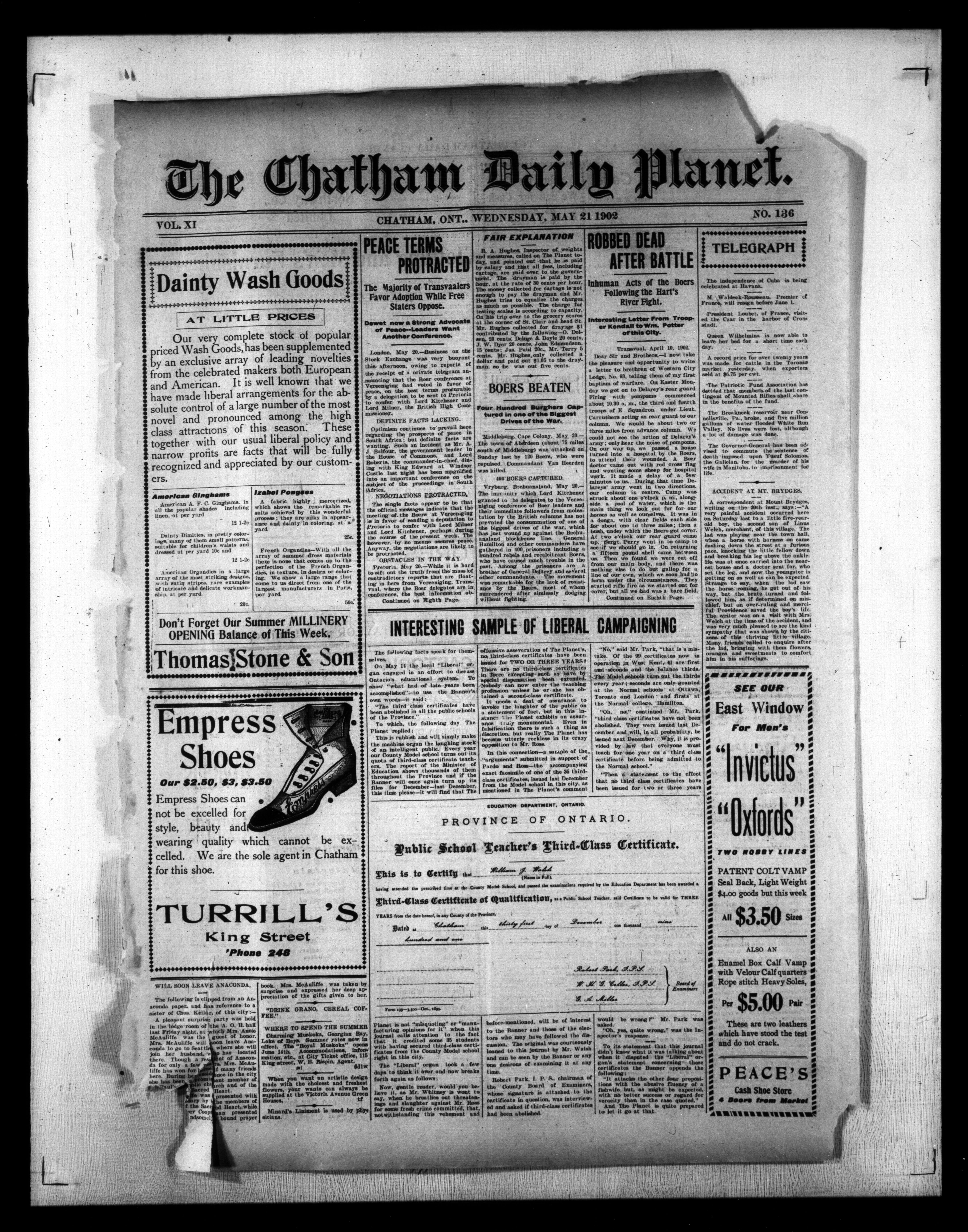 - The Chatham Daily Planet : Vol. XI, No. 136 (May 21, 1902)