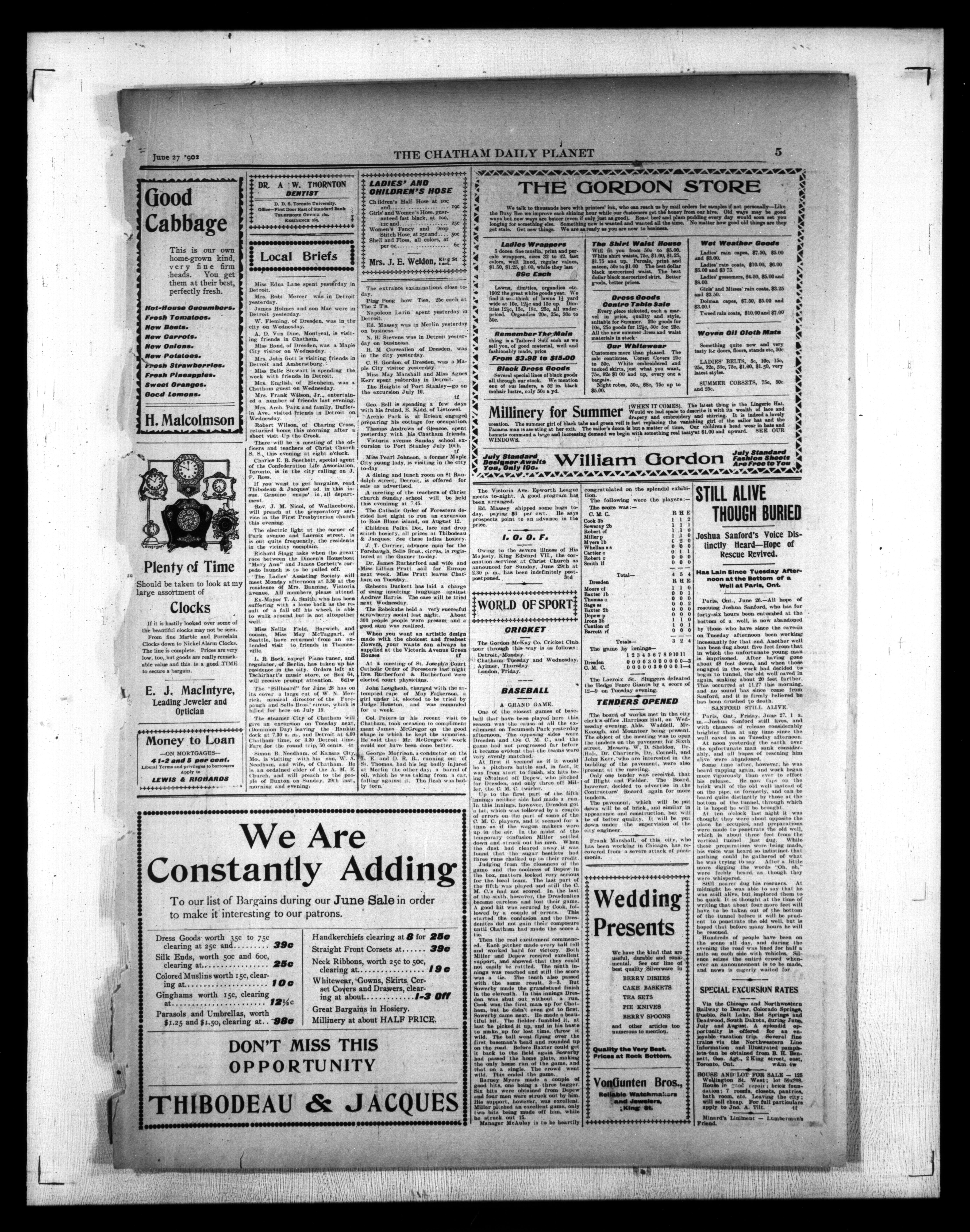 - The Chatham Daily Planet : Vol. XI, No. 167 (June 27, 1902)