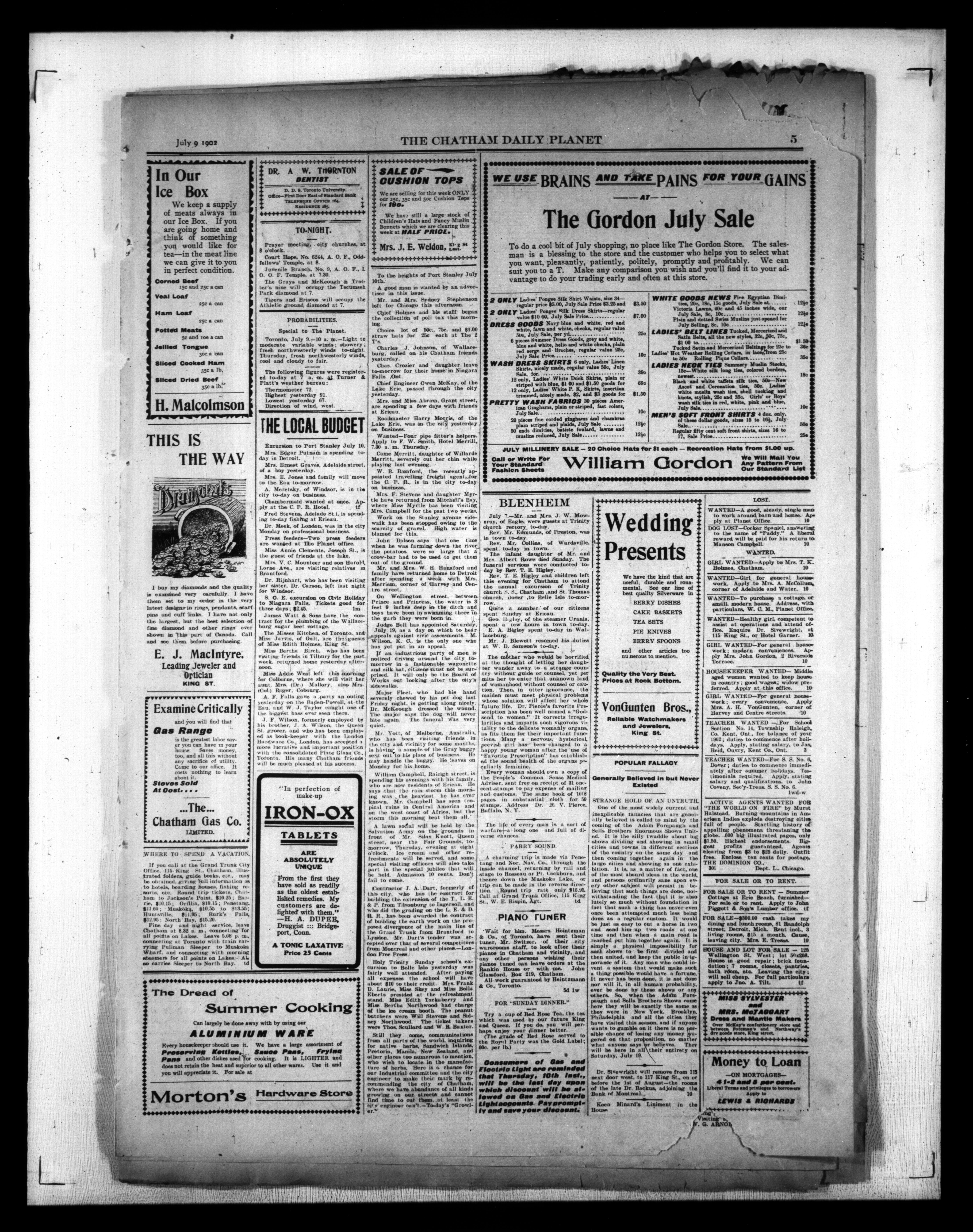 - The Chatham Daily Planet : Vol. XI, No. 177 (July 9, 1902)