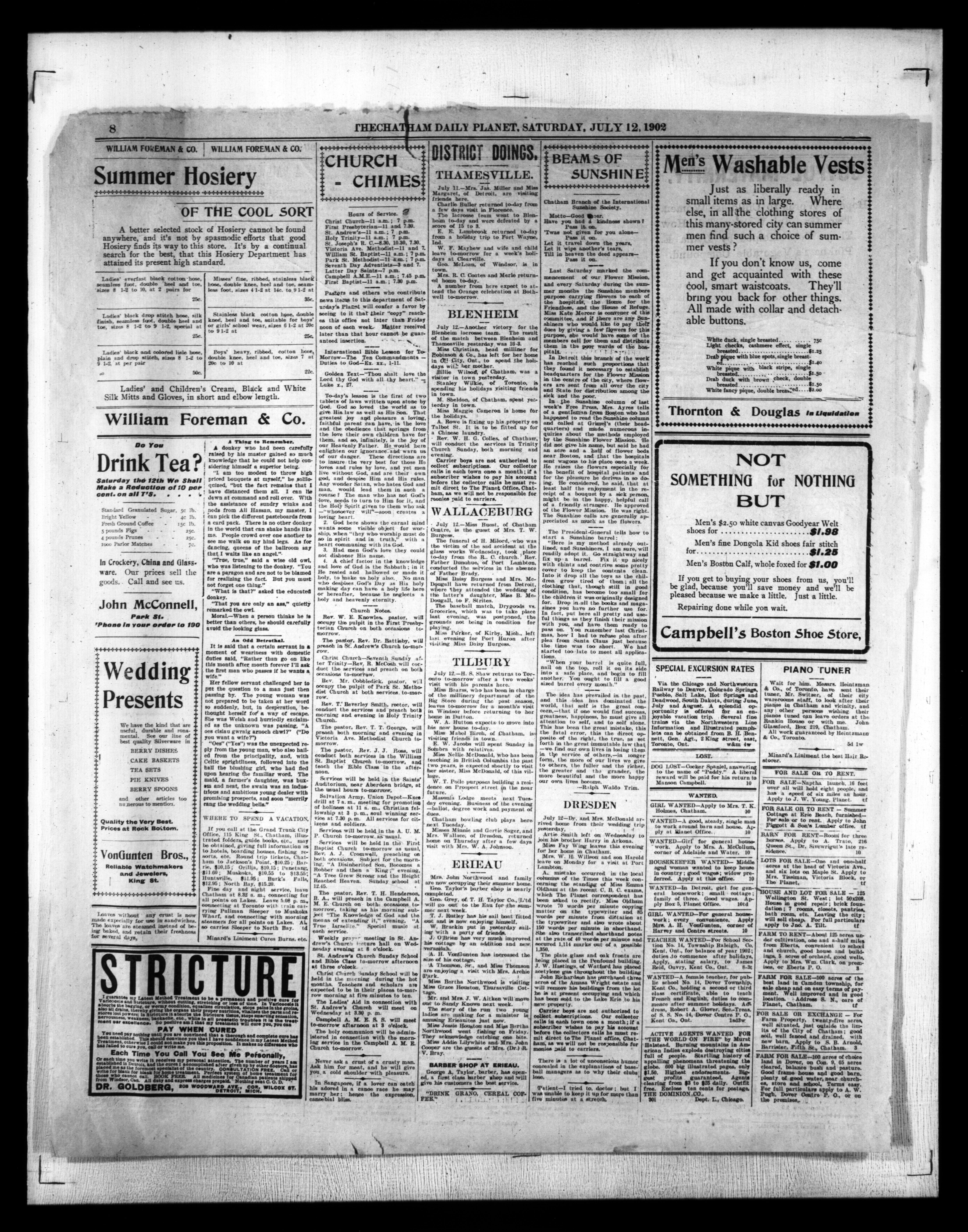 - The Chatham Daily Planet : Vol. XI, No. 180 (July 12, 1902)