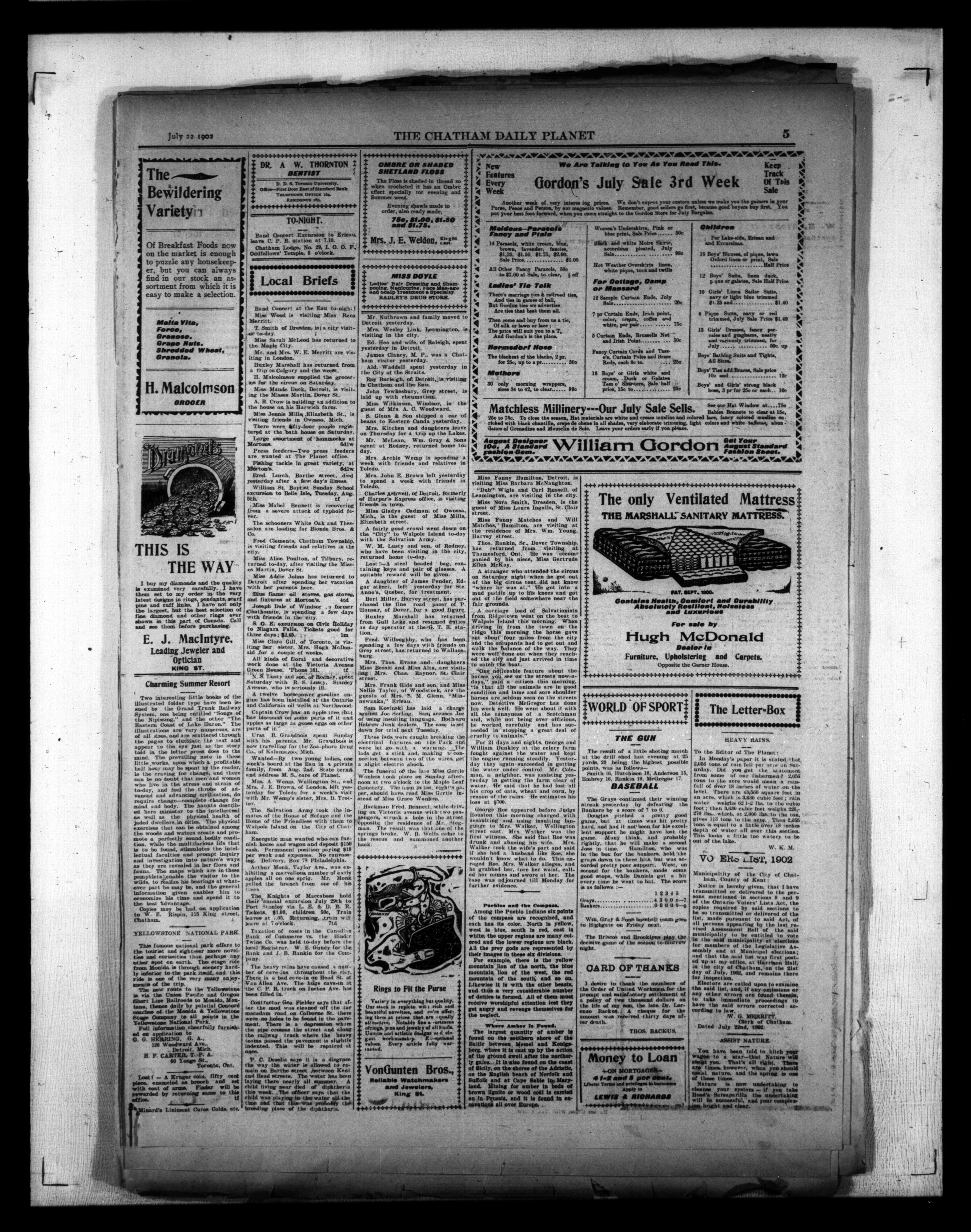 - The Chatham Daily Planet : Vol. XI, No. 188 (July 22, 1902)