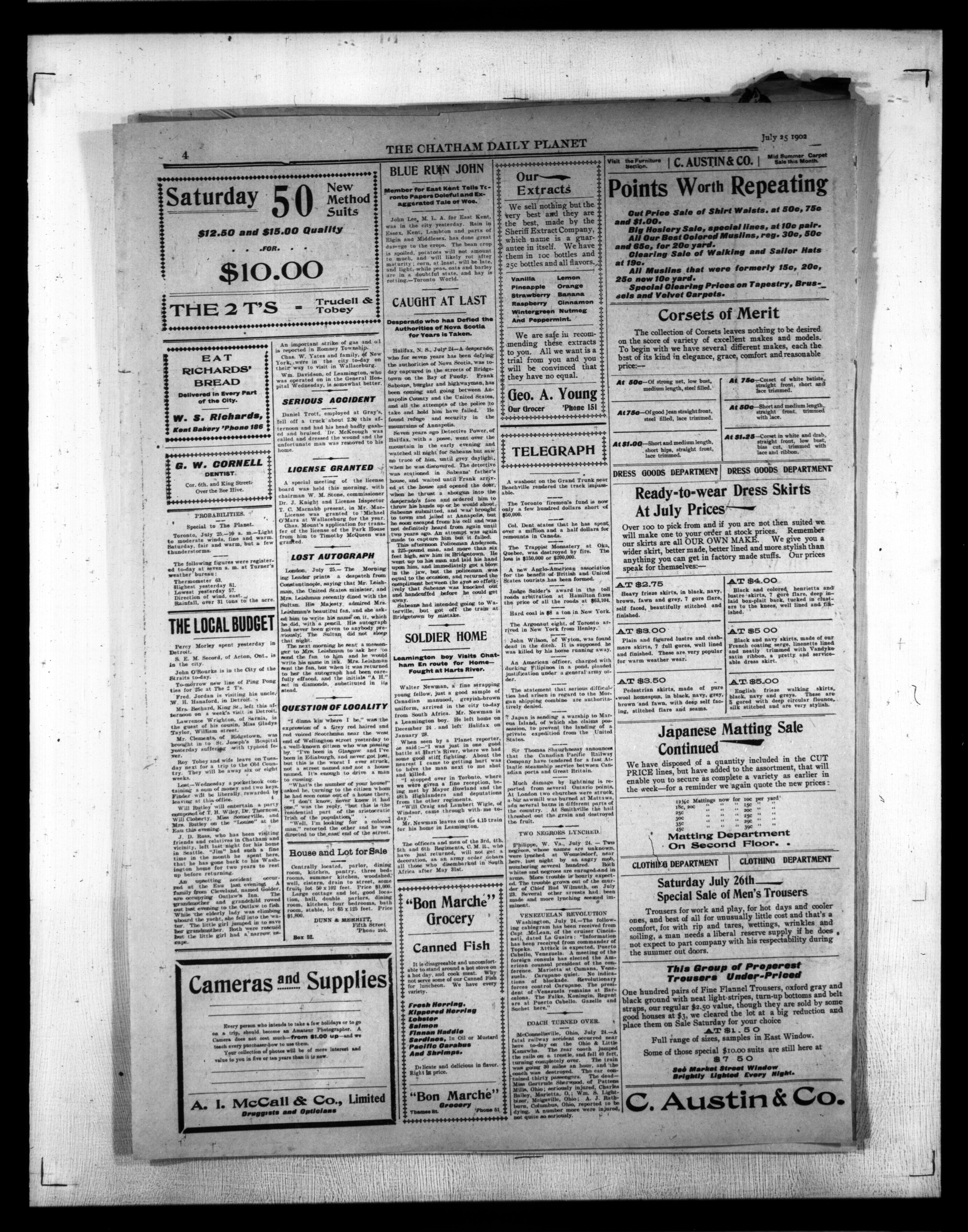 - The Chatham Daily Planet : Vol. XI, No. 191 (July 25, 1902)