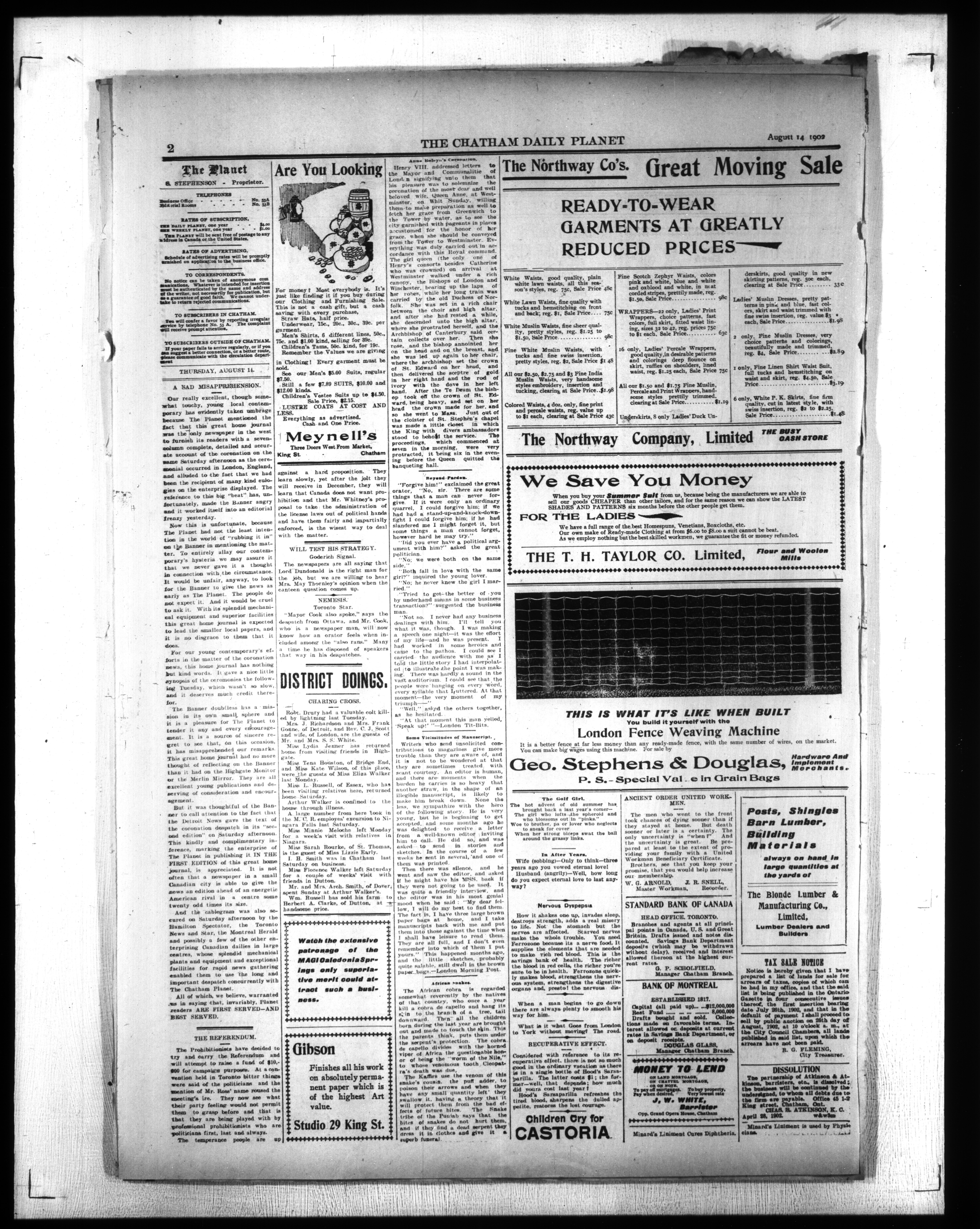 - The Chatham Daily Planet : Vol. XI, No. 208 (August 14, 1902)