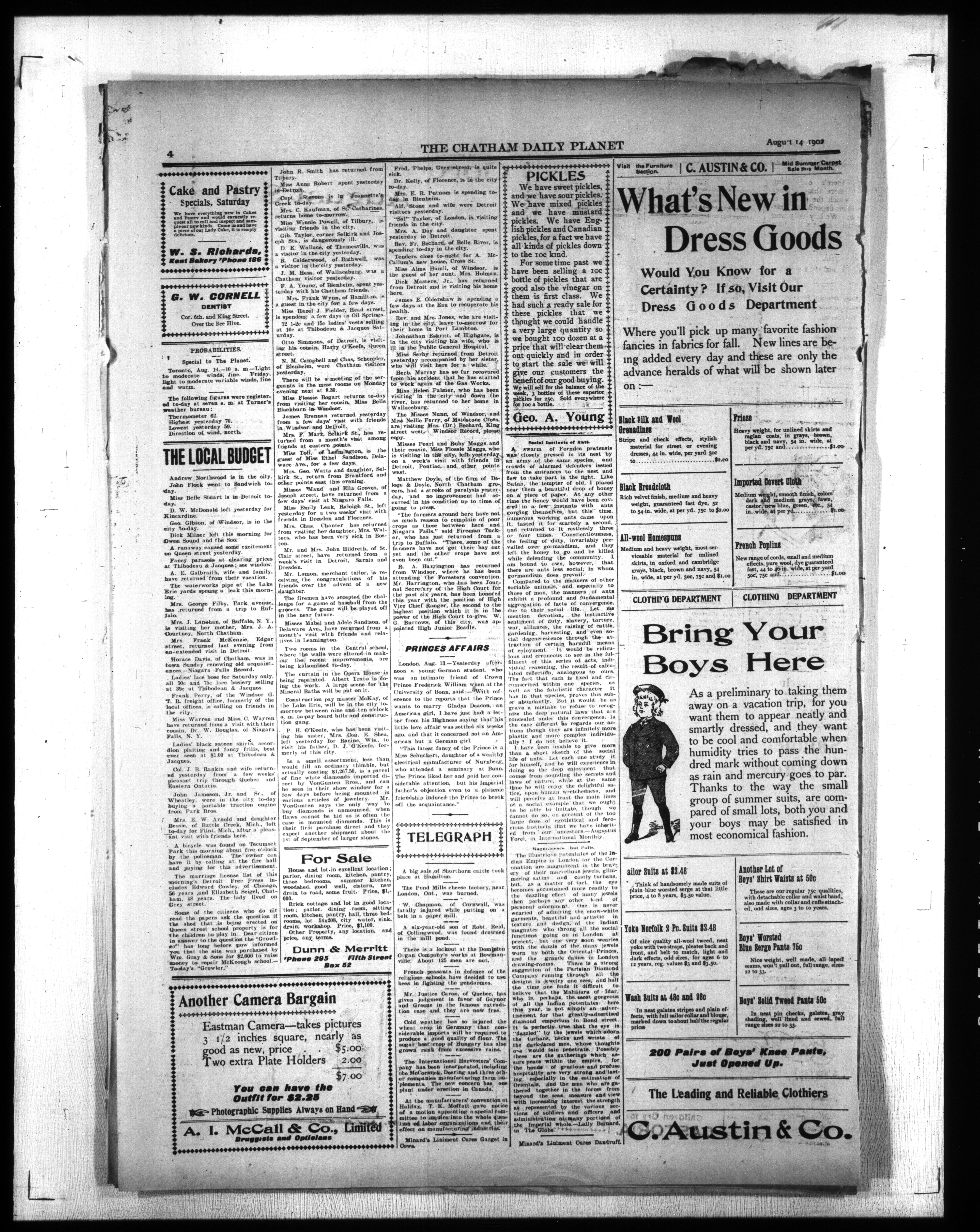 - The Chatham Daily Planet : Vol. XI, No. 208 (August 14, 1902)