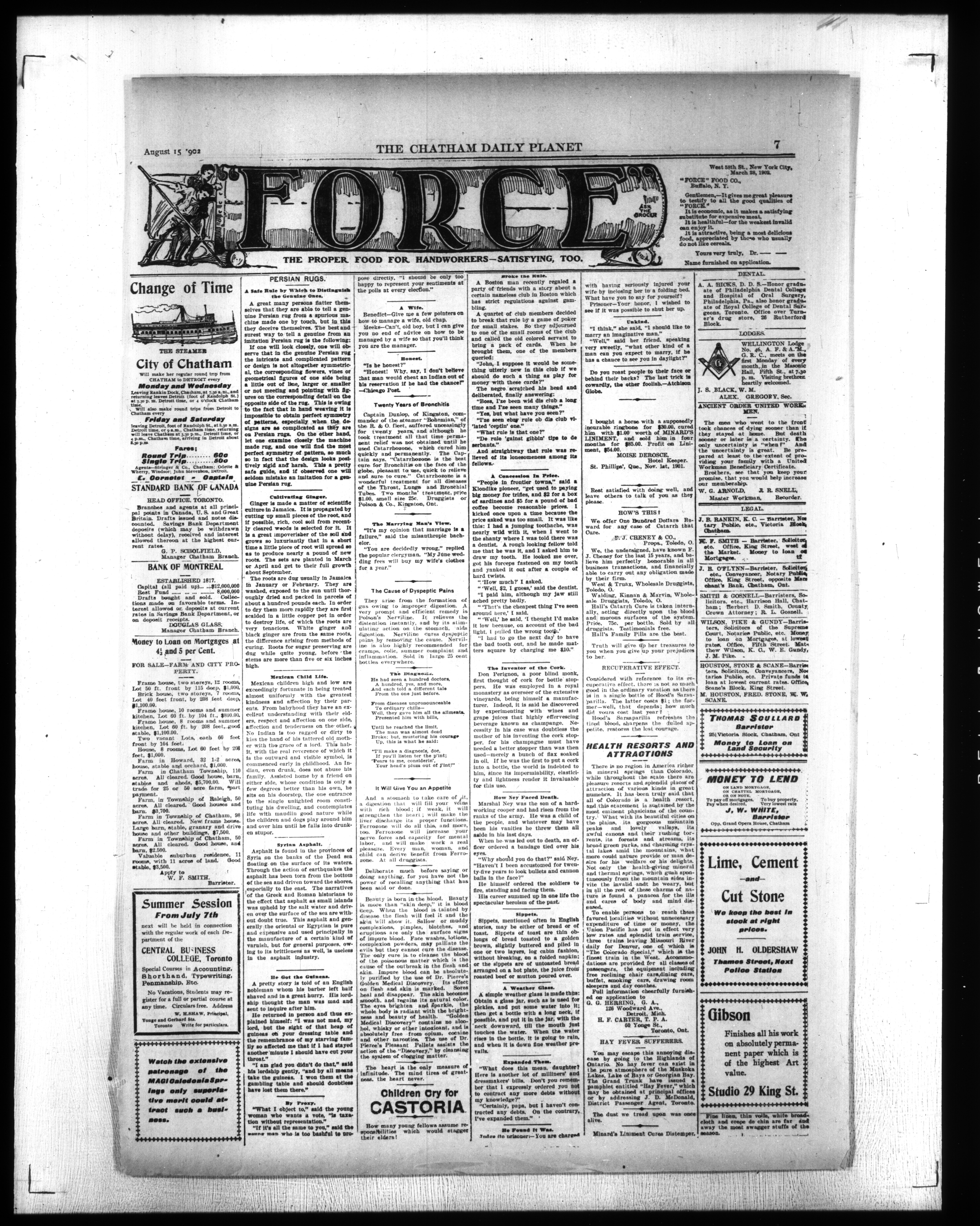 - The Chatham Daily Planet : Vol. XI, No. 209 (August 15, 1902)