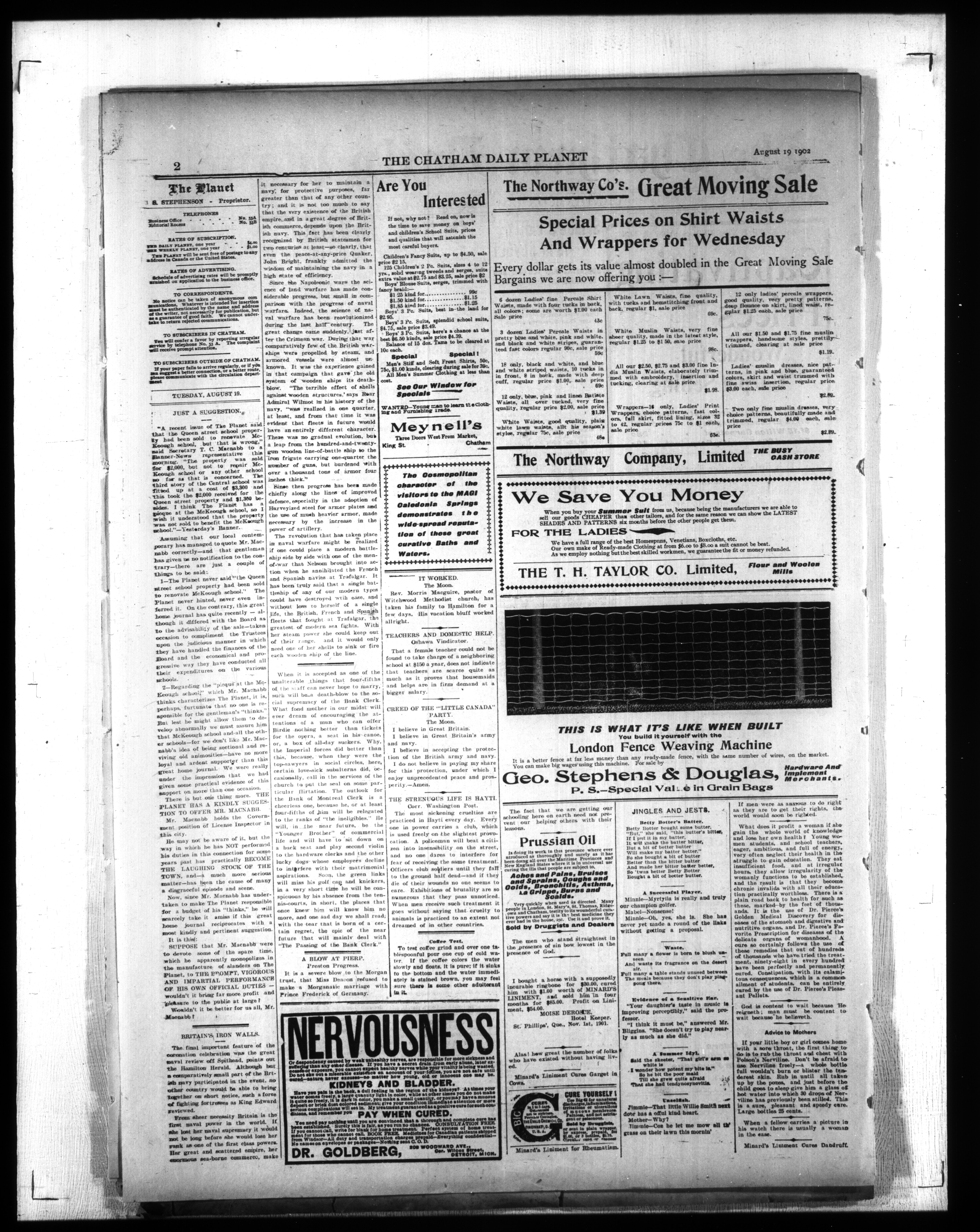 - The Chatham Daily Planet : Vol. XI, No. 212 (August 19, 1902)
