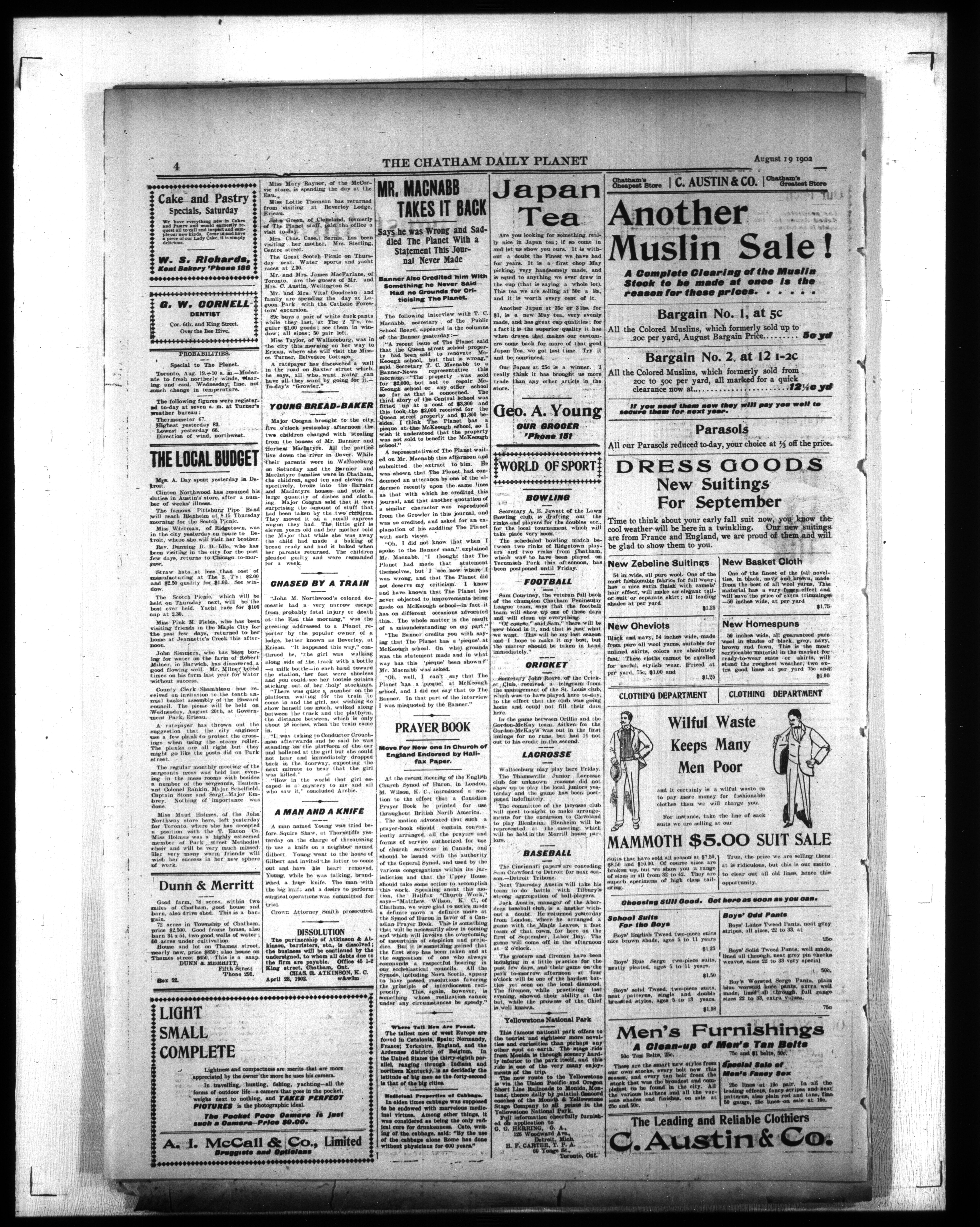 - The Chatham Daily Planet : Vol. XI, No. 212 (August 19, 1902)