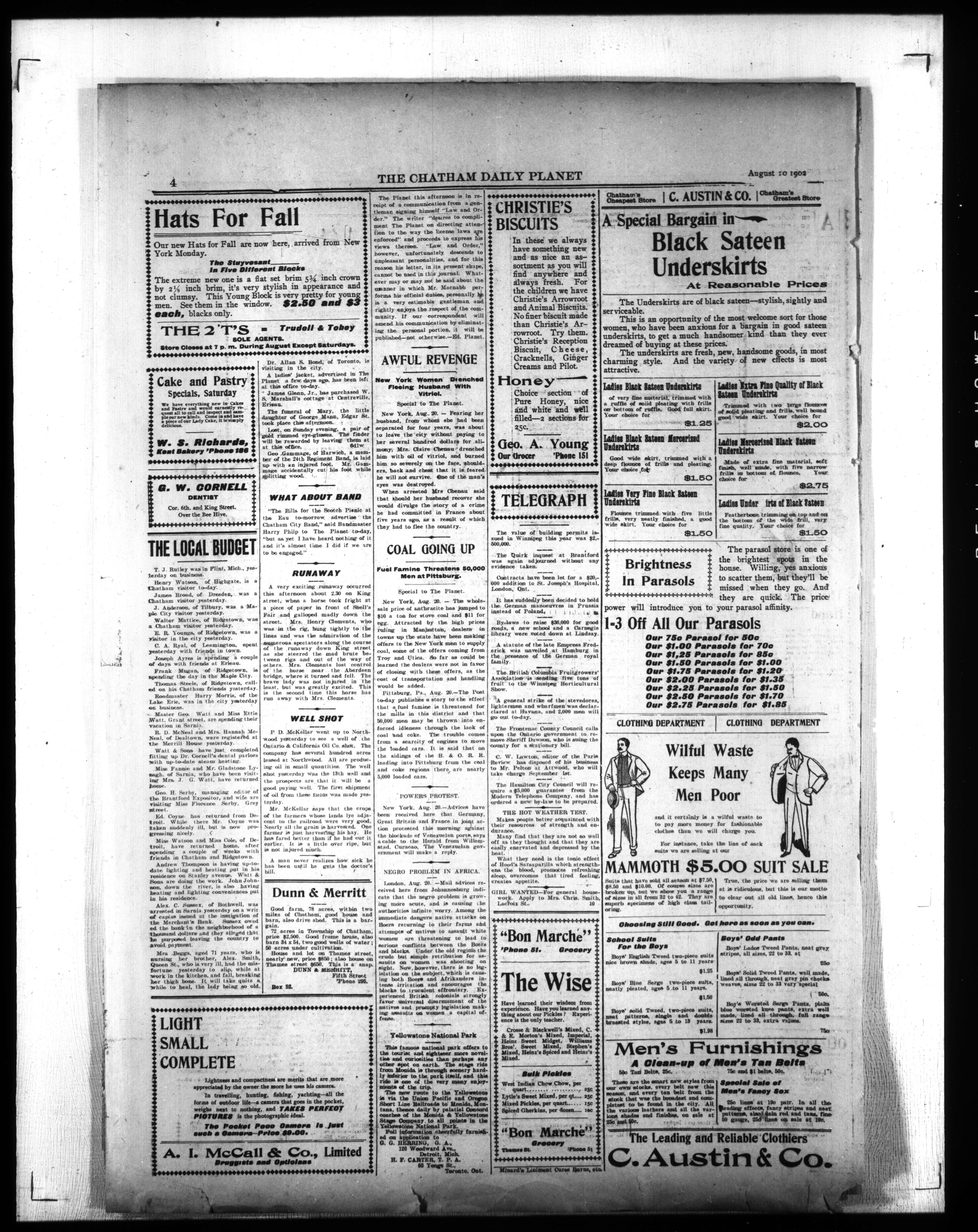 - The Chatham Daily Planet : Vol. XI, No. 213 (August 20, 1902)