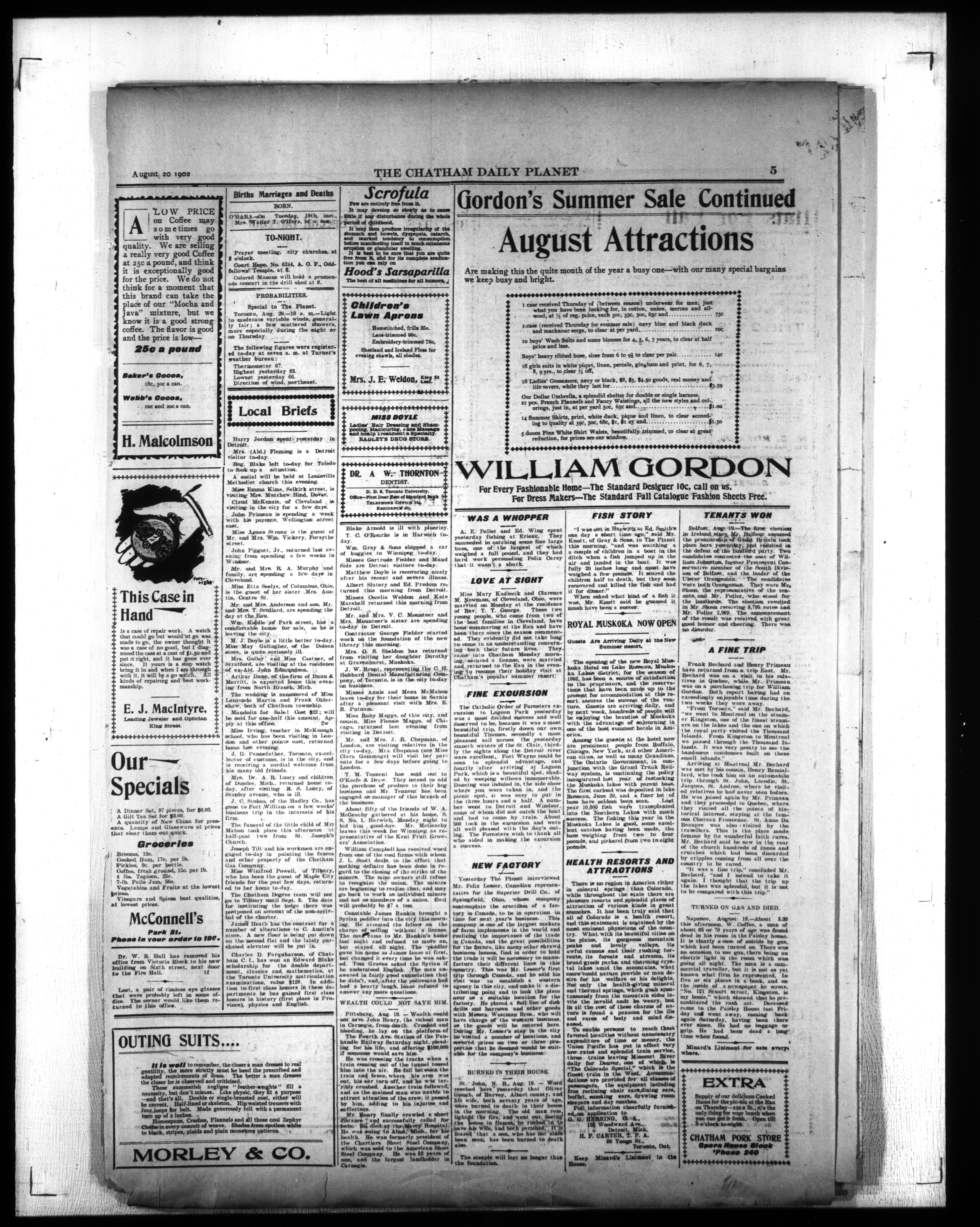 - The Chatham Daily Planet : Vol. XI, No. 213 (August 20, 1902)