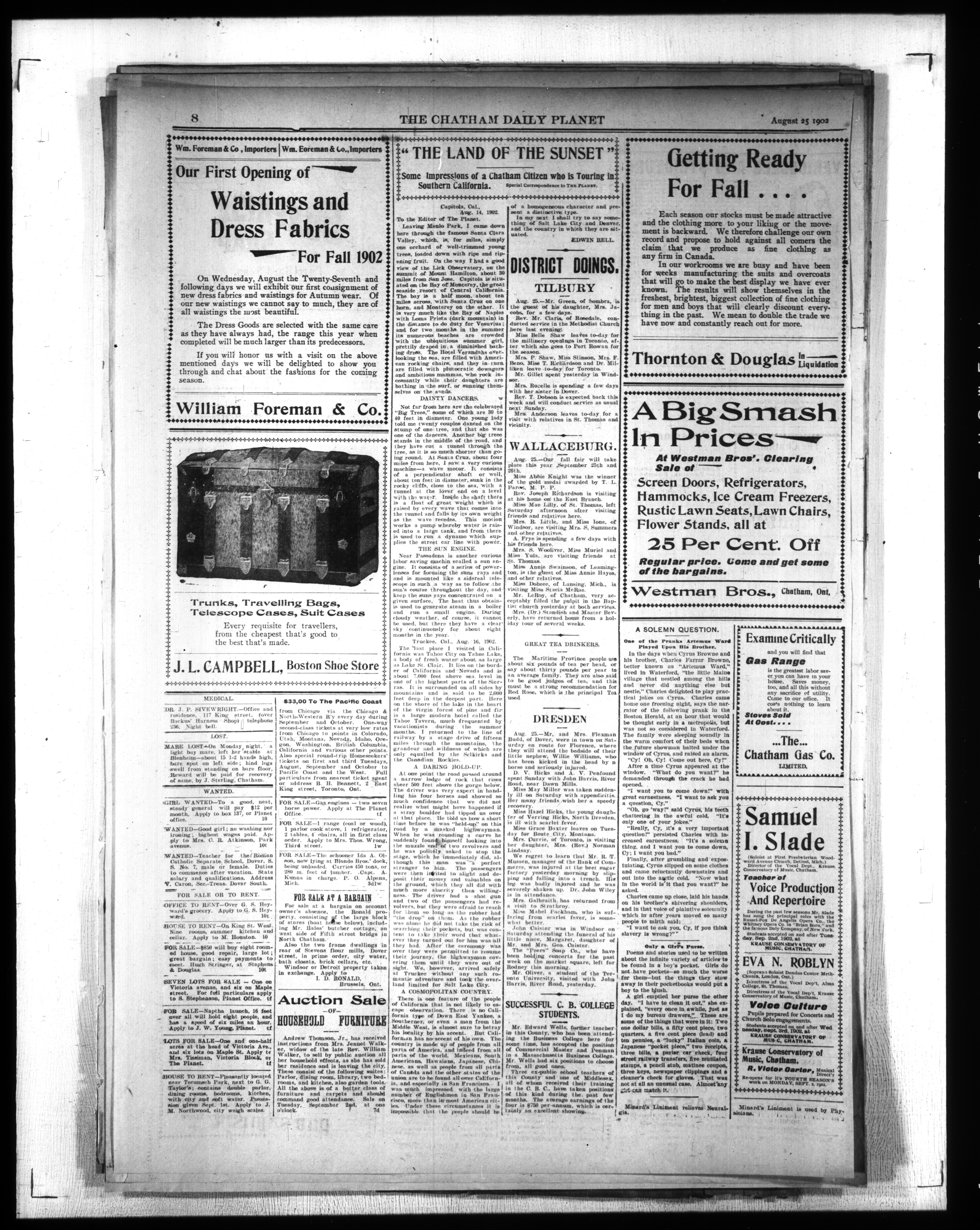 - The Chatham Daily Planet : Vol. XI, No. 217 (August 25, 1902)