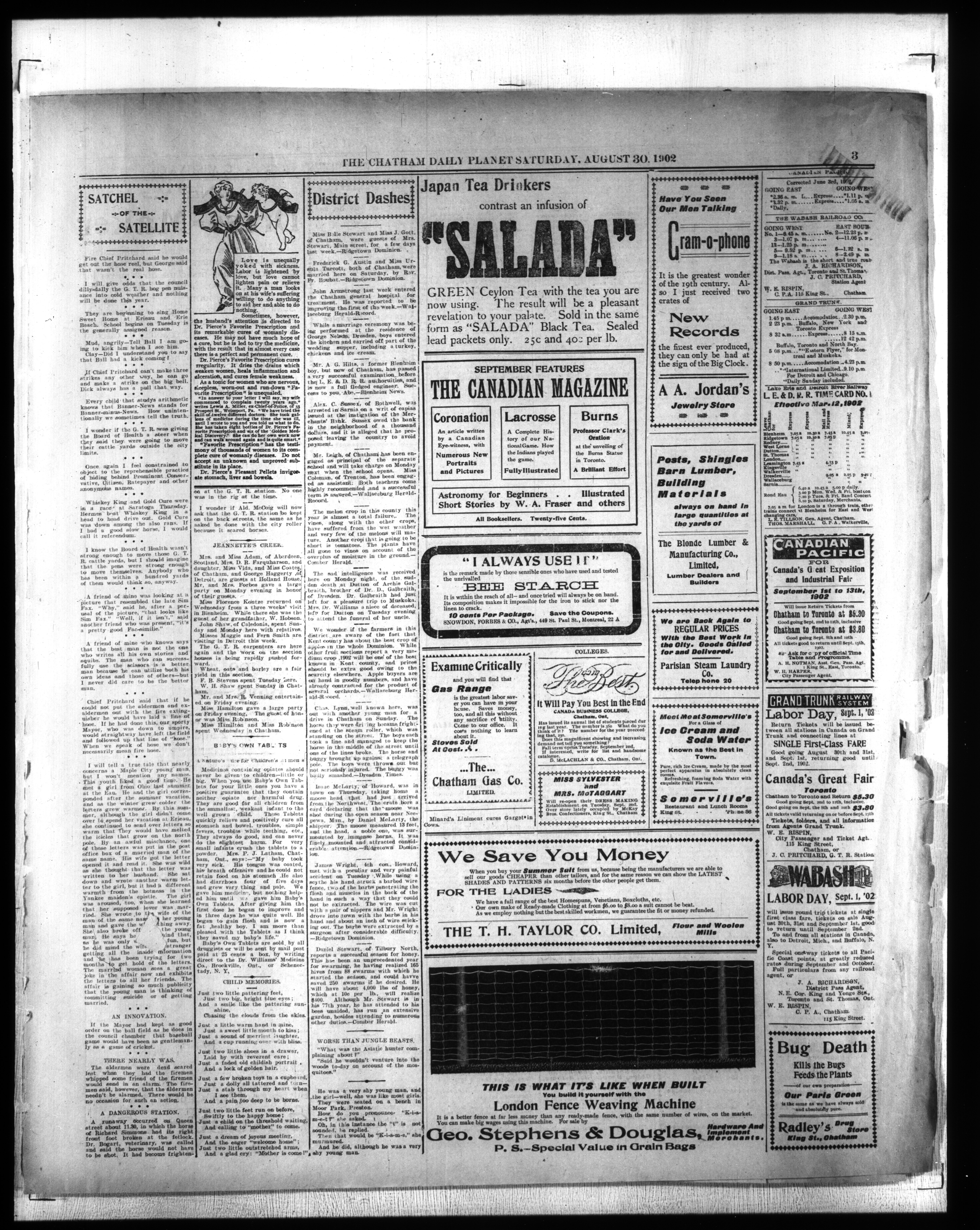 - The Chatham Daily Planet : Vol. XI, No. 223 (August 30, 1902)