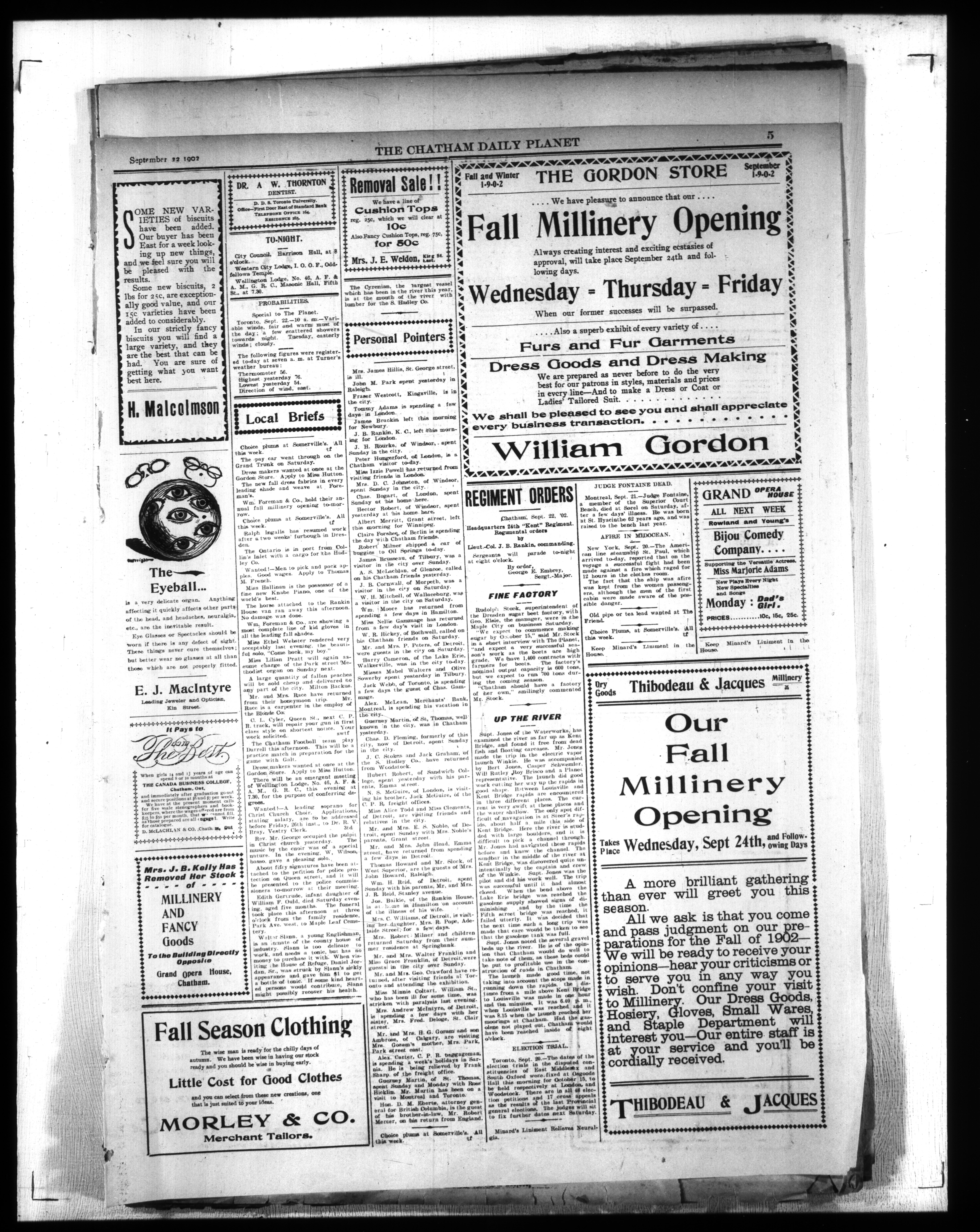 - The Chatham Daily Planet : Vol. XI, No. 242 (September 22, 1902)