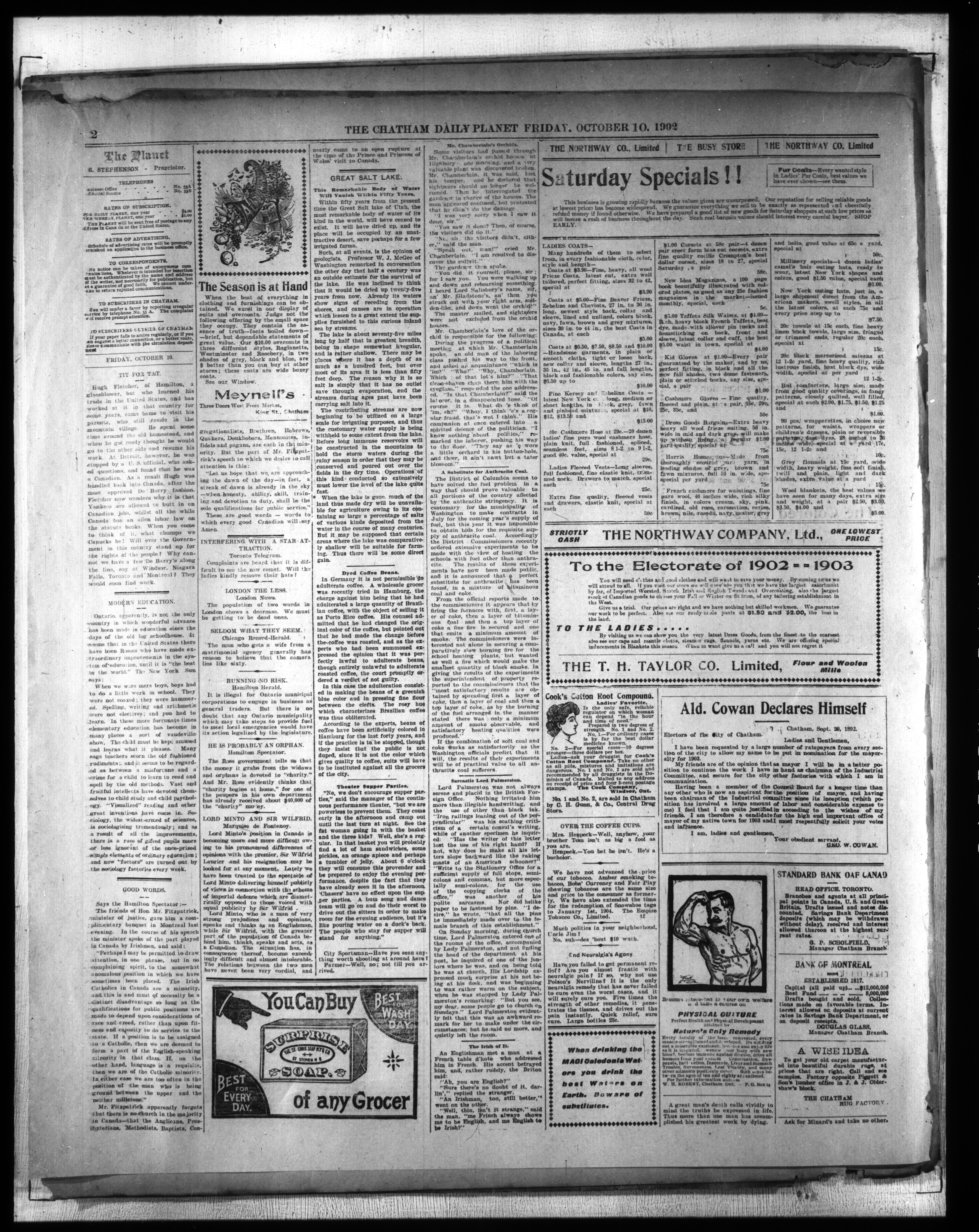 - The Chatham Daily Planet : Vol. XI, No. 258 (October 10, 1902)