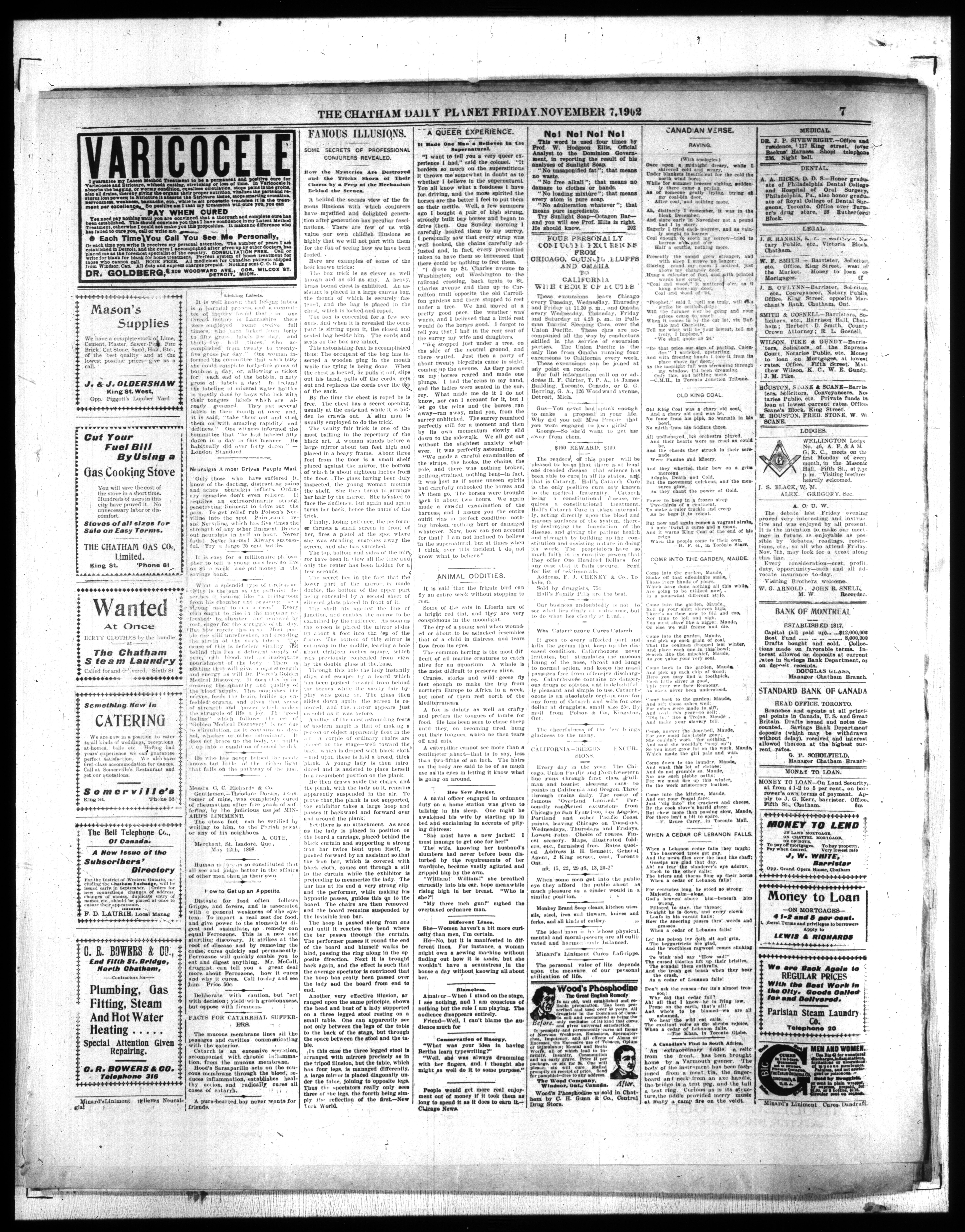 - The Chatham Daily Planet : Vol. XI, No. 282 (November 7, 1902)