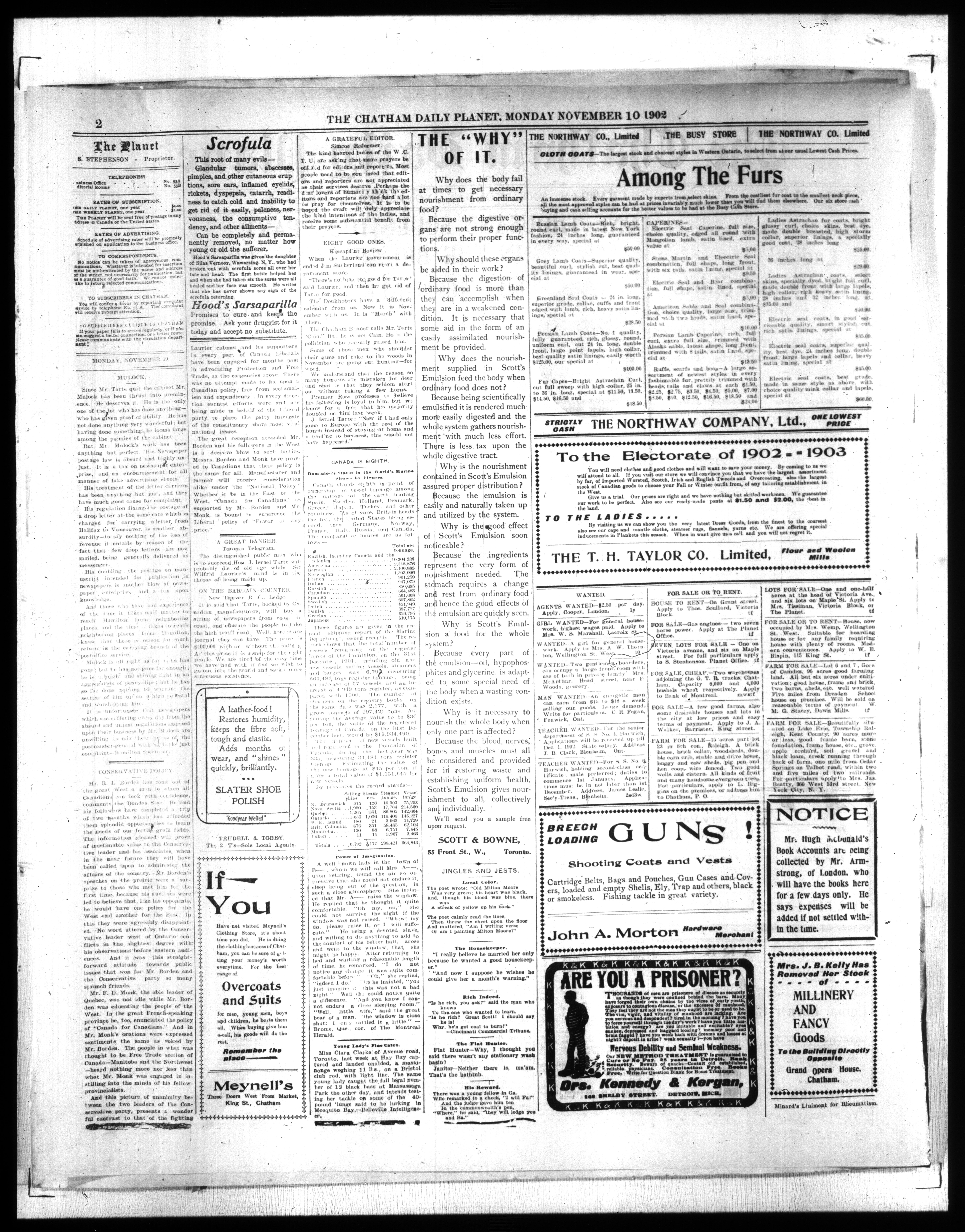 - The Chatham Daily Planet : Vol. XI, No. 284 (November 10, 1902)