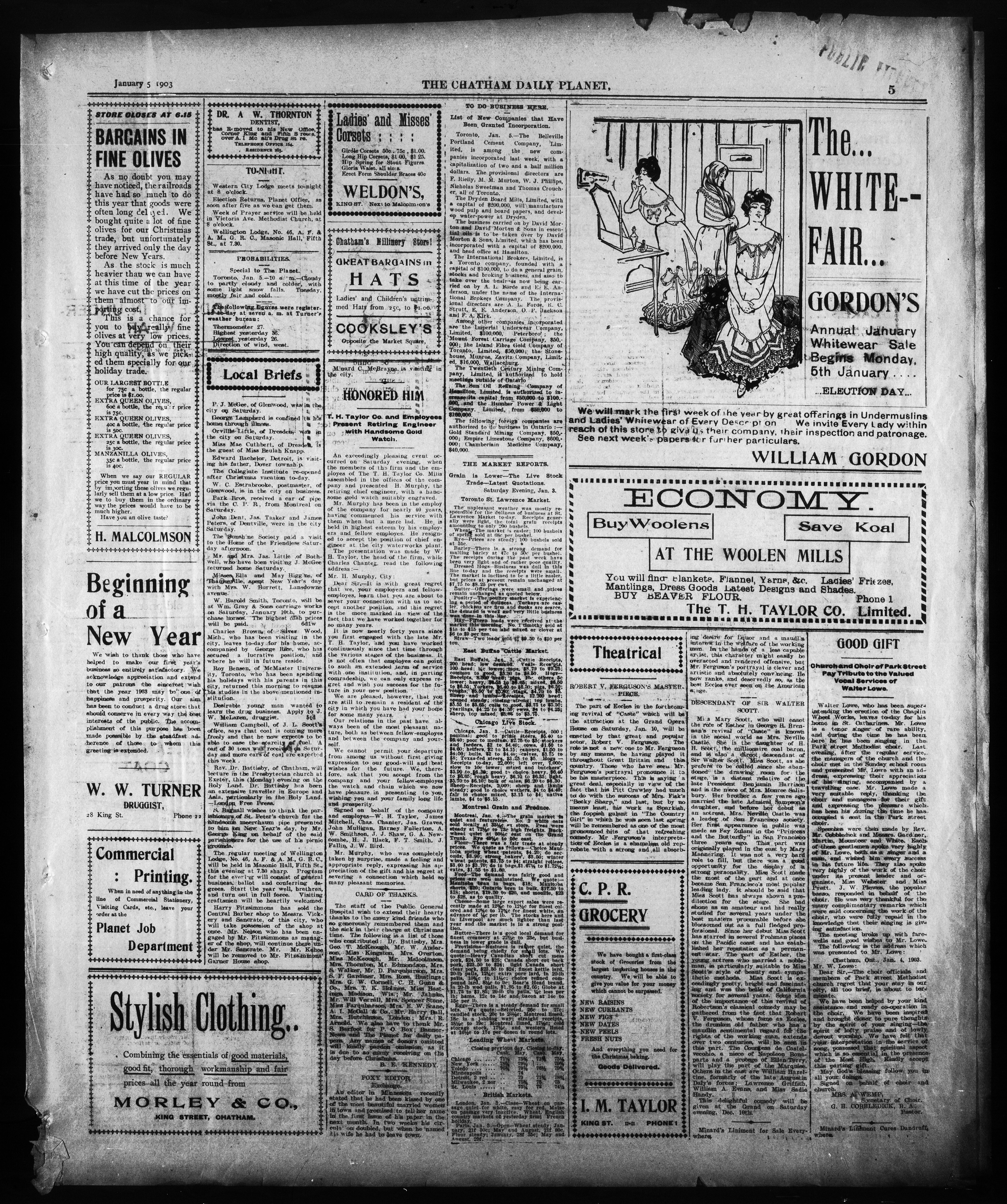- The Chatham Daily Planet : Vol. XII, No. 19 (January 5, 1903)