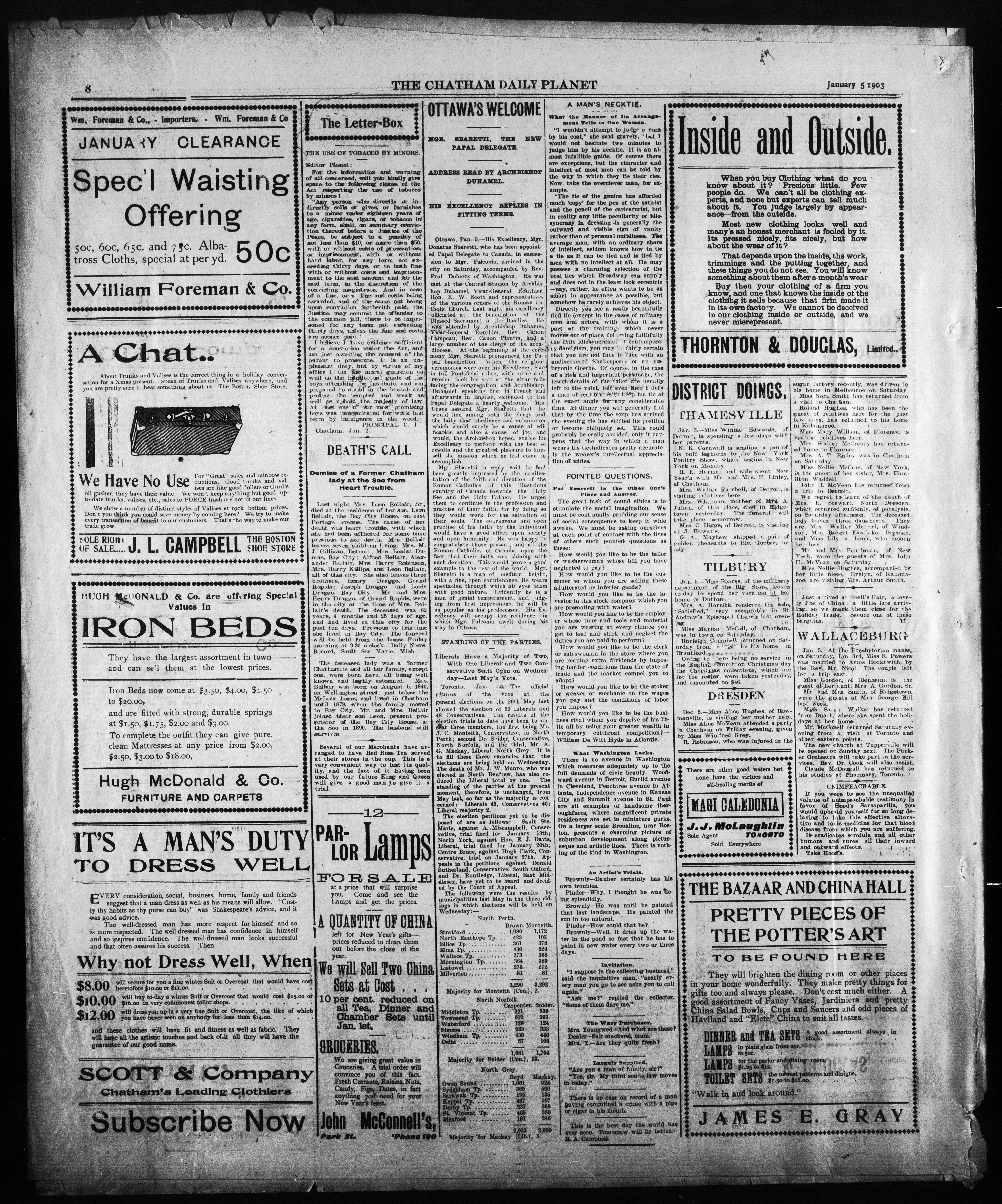 - The Chatham Daily Planet : Vol. XII, No. 19 (January 5, 1903)