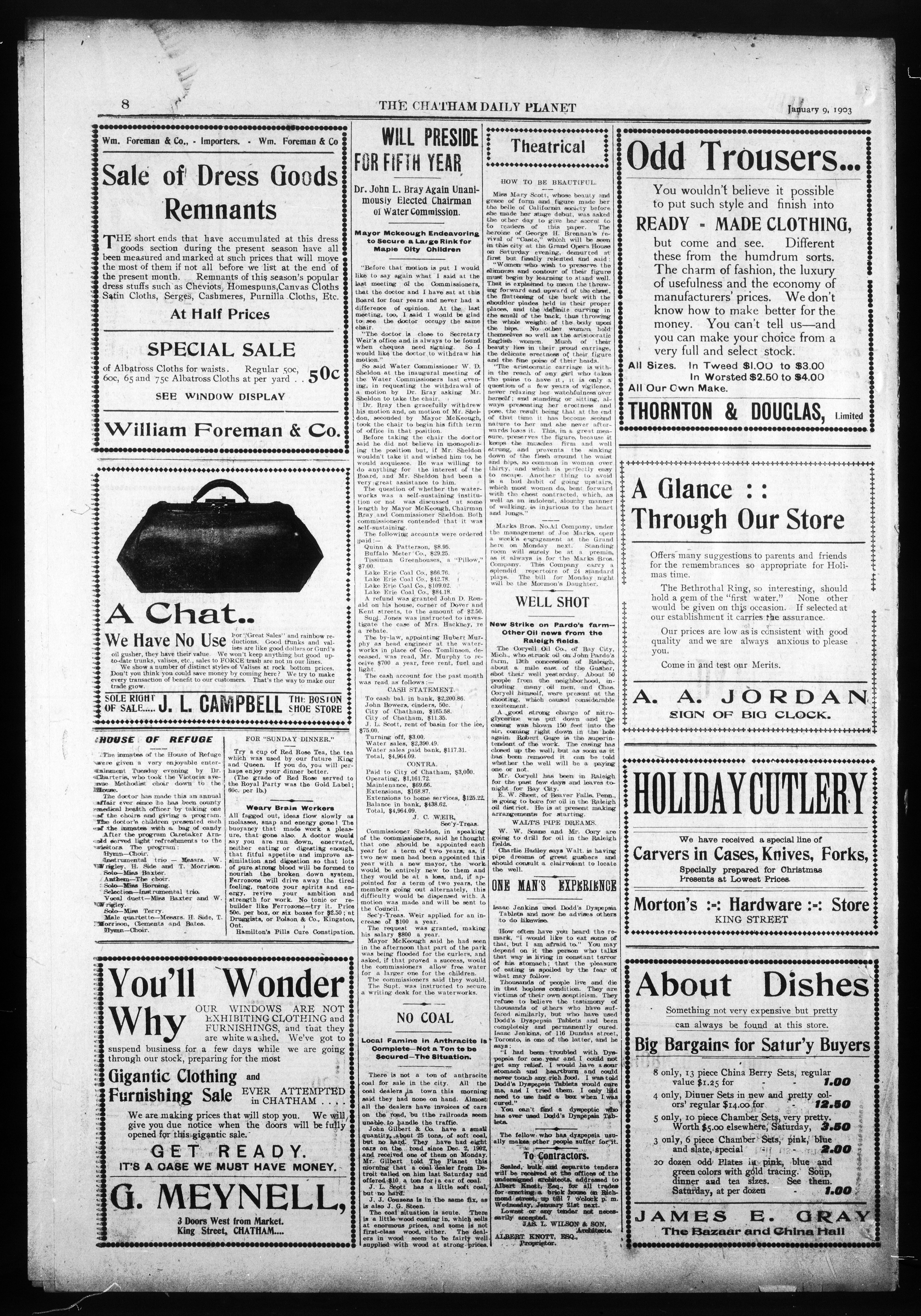 - The Chatham Daily Planet : Vol. XII, No. 23 (January 9, 1903)