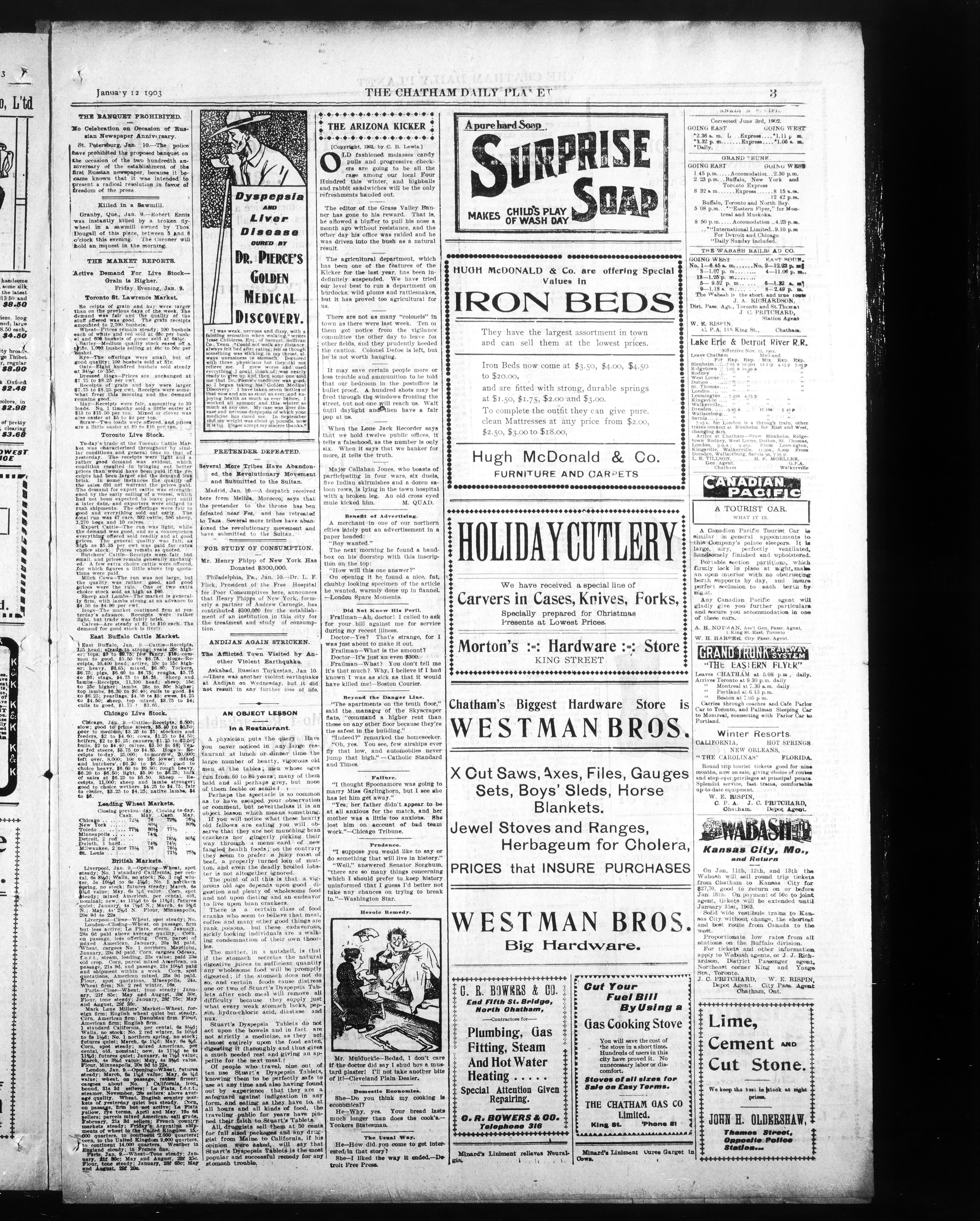 - The Chatham Daily Planet : Vol. XII, No. 25 (January 12, 1903)