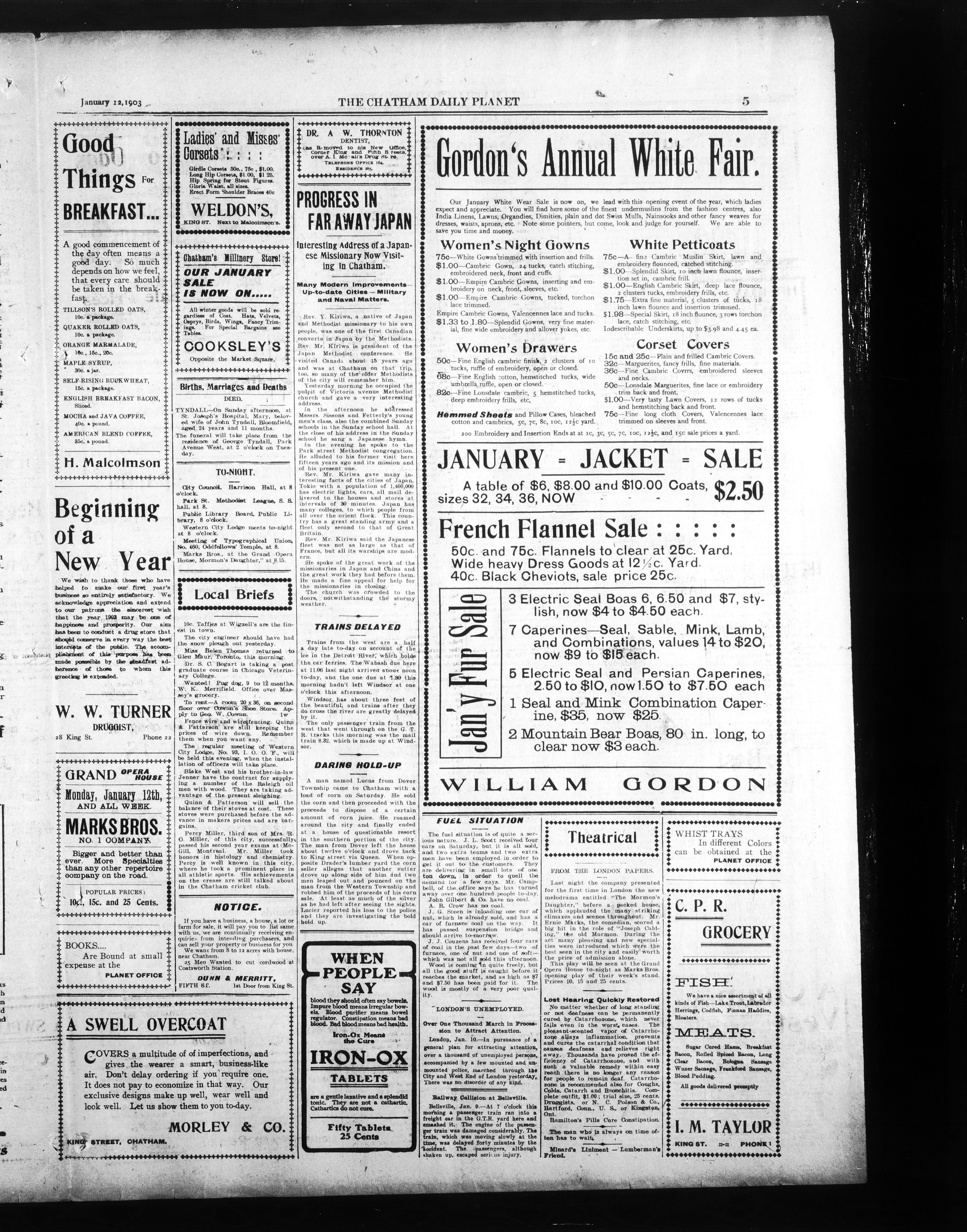 - The Chatham Daily Planet : Vol. XII, No. 25 (January 12, 1903)