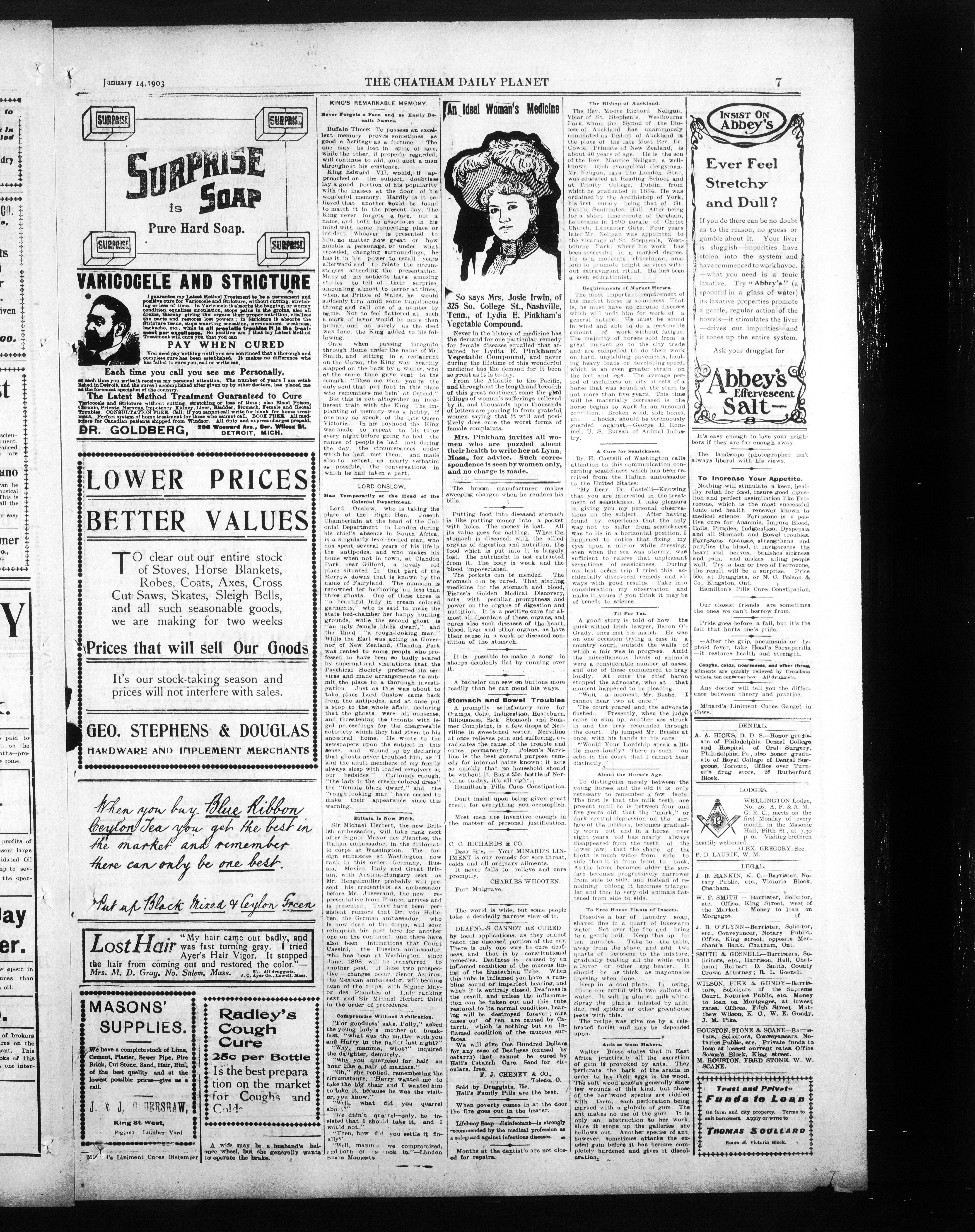 - The Chatham Daily Planet : Vol. XII, No. 27 (January 14, 1903)