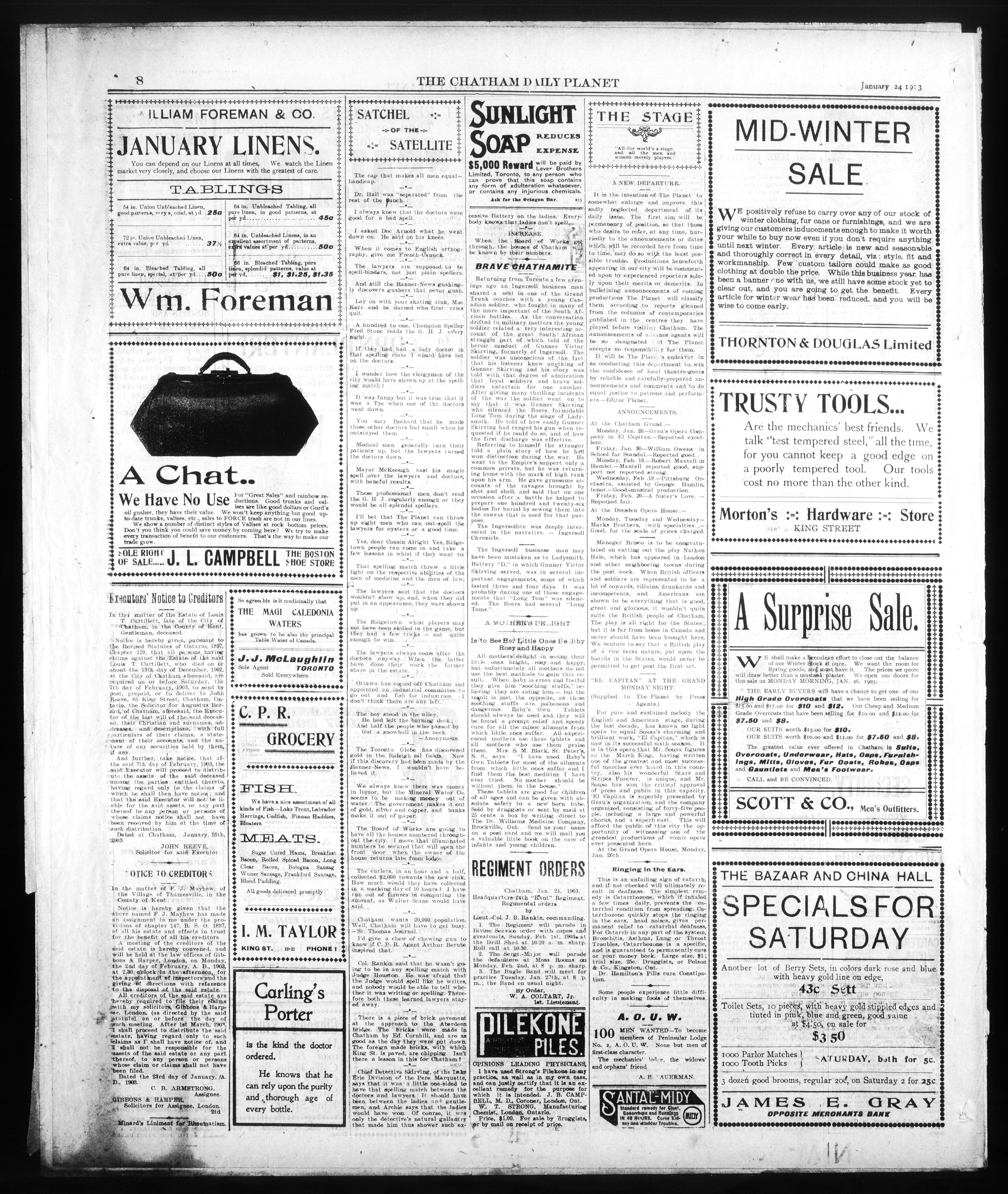 - The Chatham Daily Planet : Vol. XII, No. 36 (January 24, 1903)