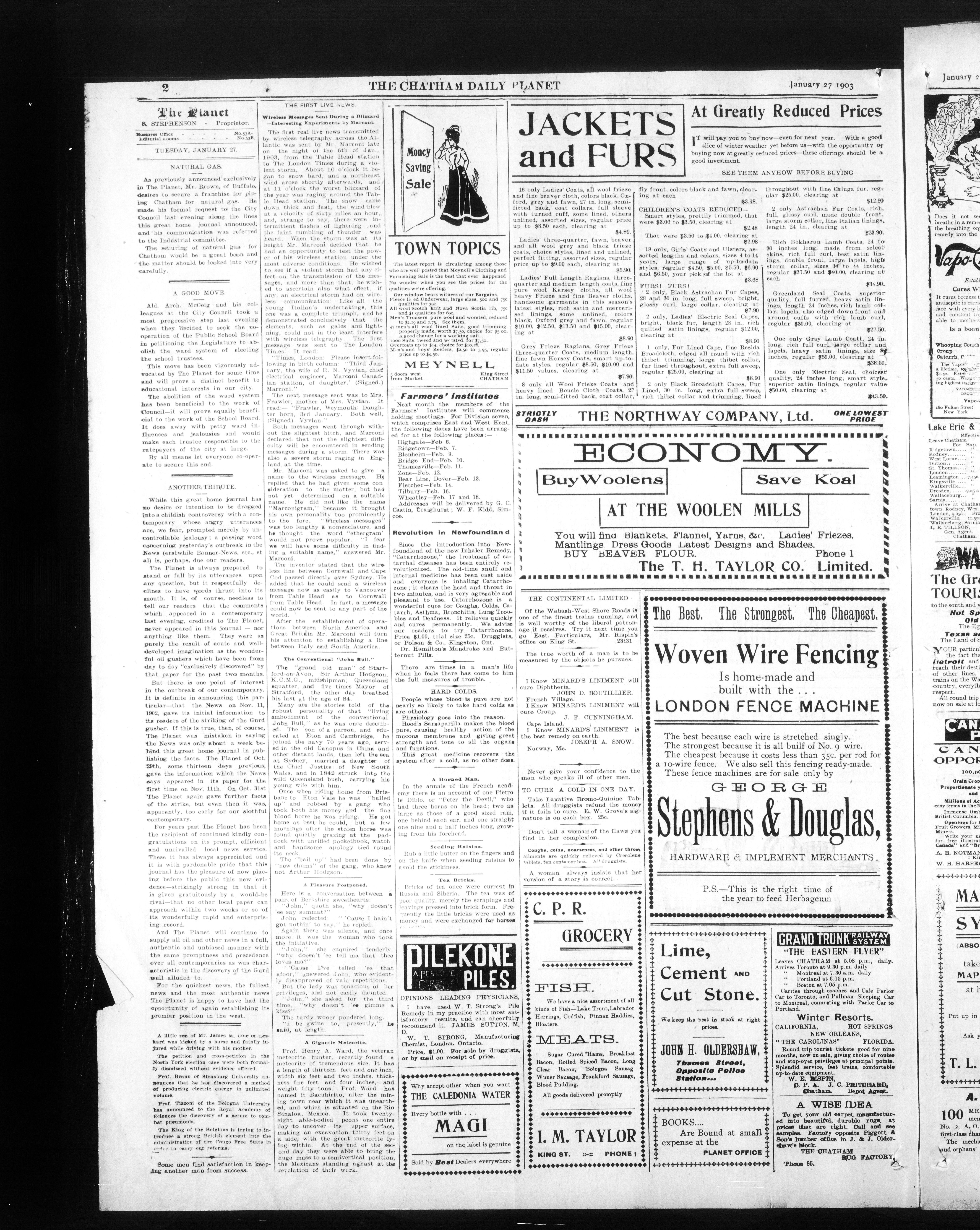 The Chatham Daily Planet. : The Chatham Daily Planet : Vol. XII, No. 38 (January 27, 1903)