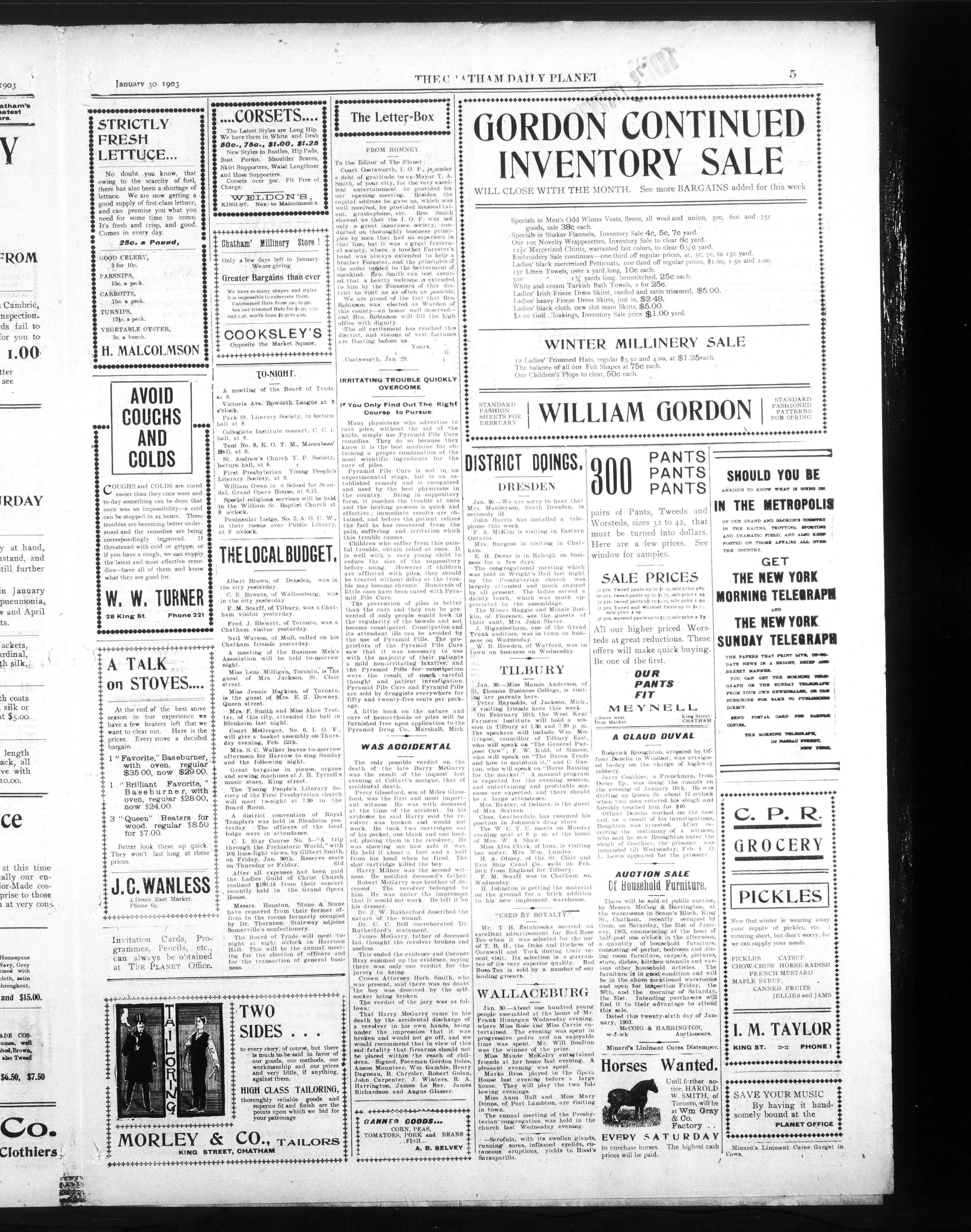 The Chatham Daily Planet. : The Chatham Daily Planet : Vol. XII, No. 41 (January 30, 1903)