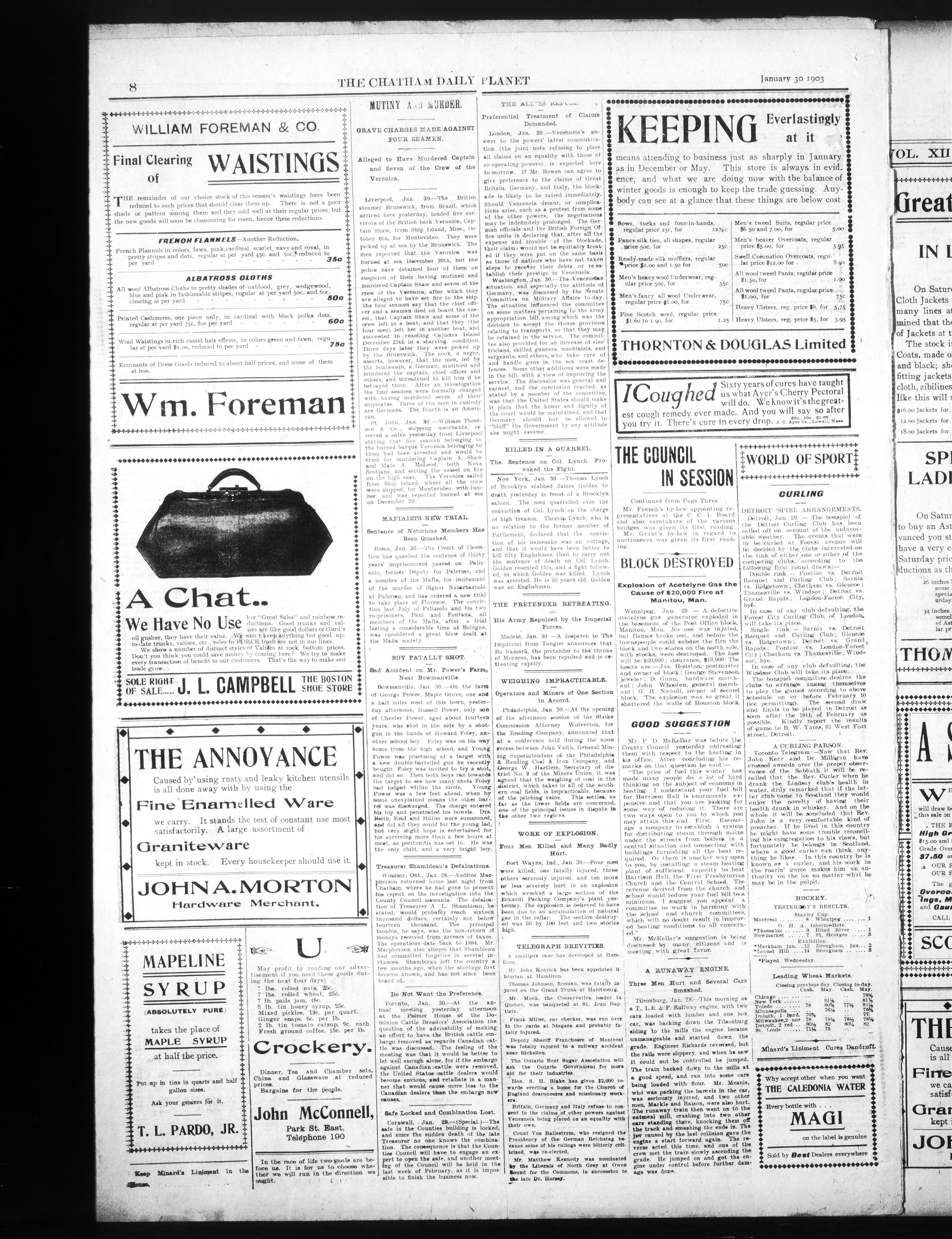 - The Chatham Daily Planet : Vol. XII, No. 41 (January 30, 1903)