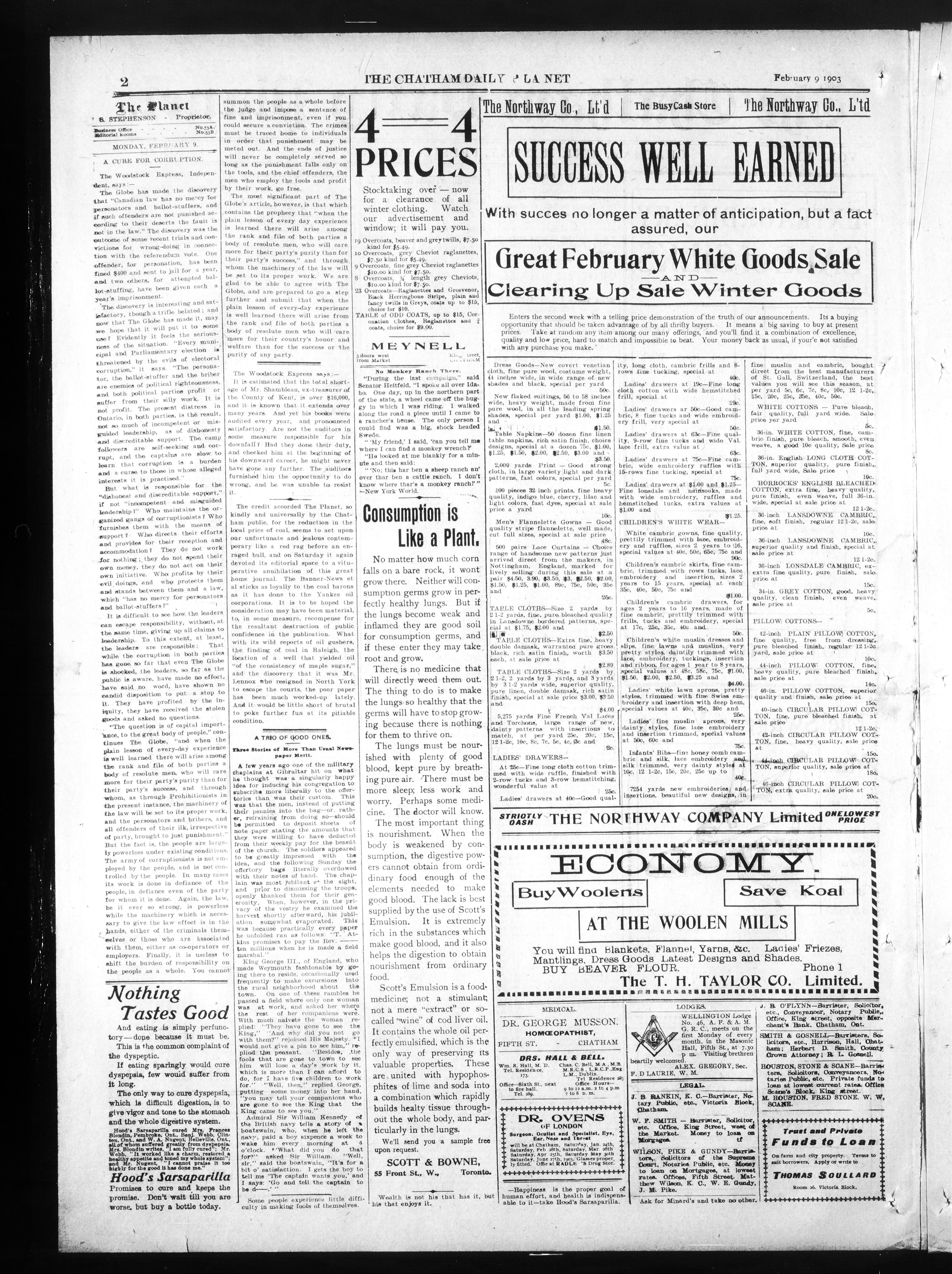 - The Chatham Daily Planet : Vol. XII, No. 49 (February 9, 1903)