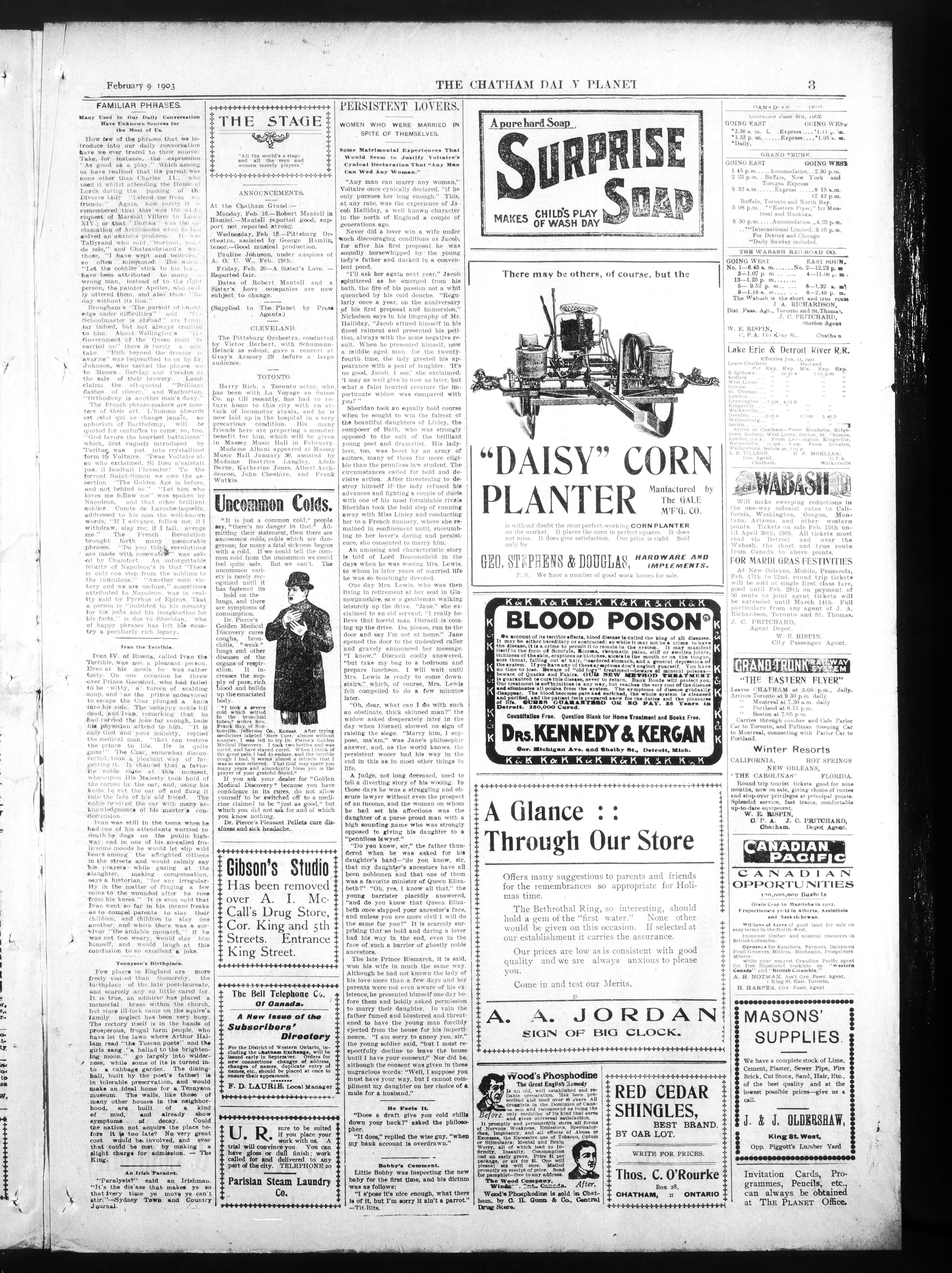 - The Chatham Daily Planet : Vol. XII, No. 49 (February 9, 1903)