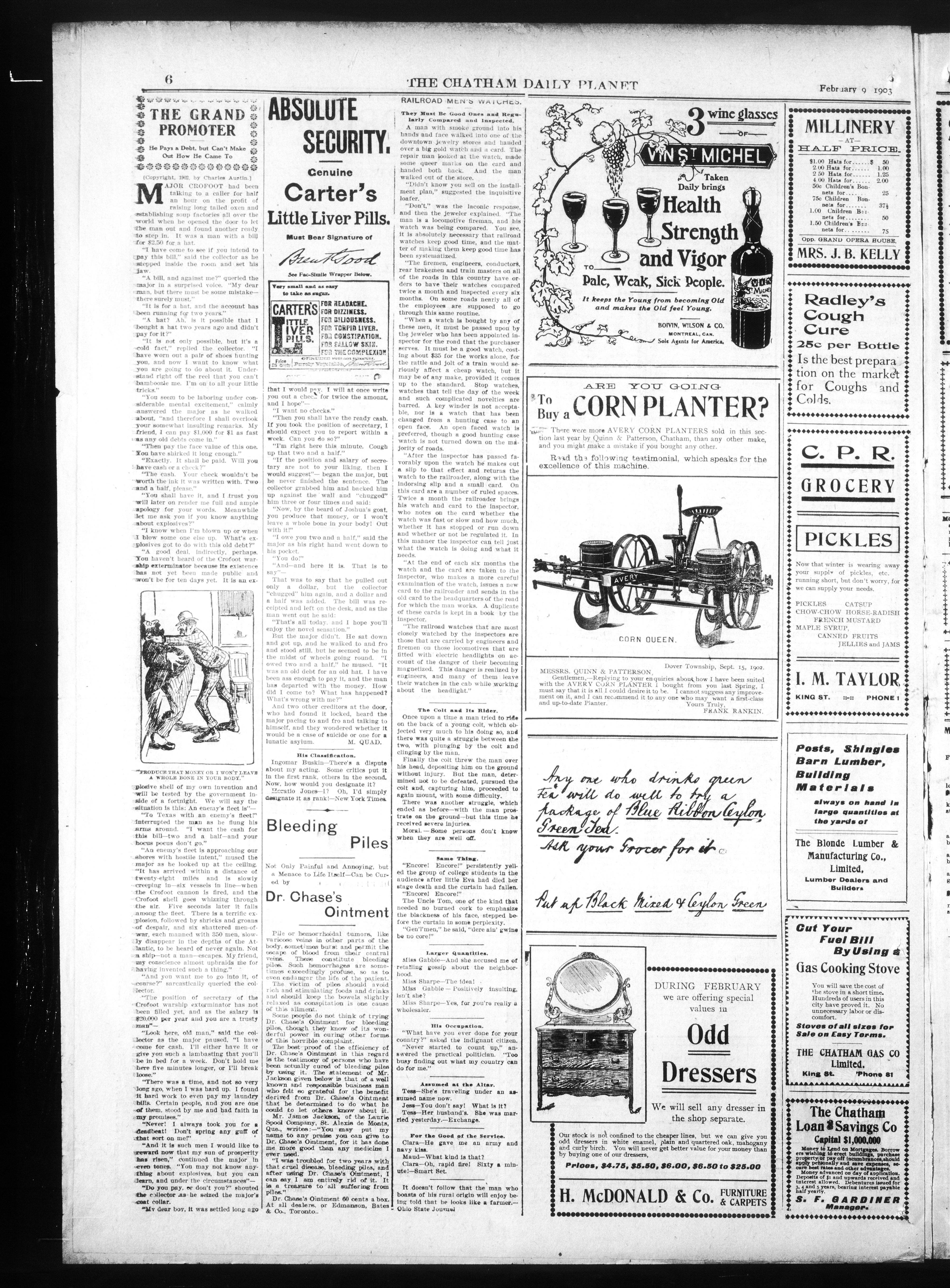 - The Chatham Daily Planet : Vol. XII, No. 49 (February 9, 1903)