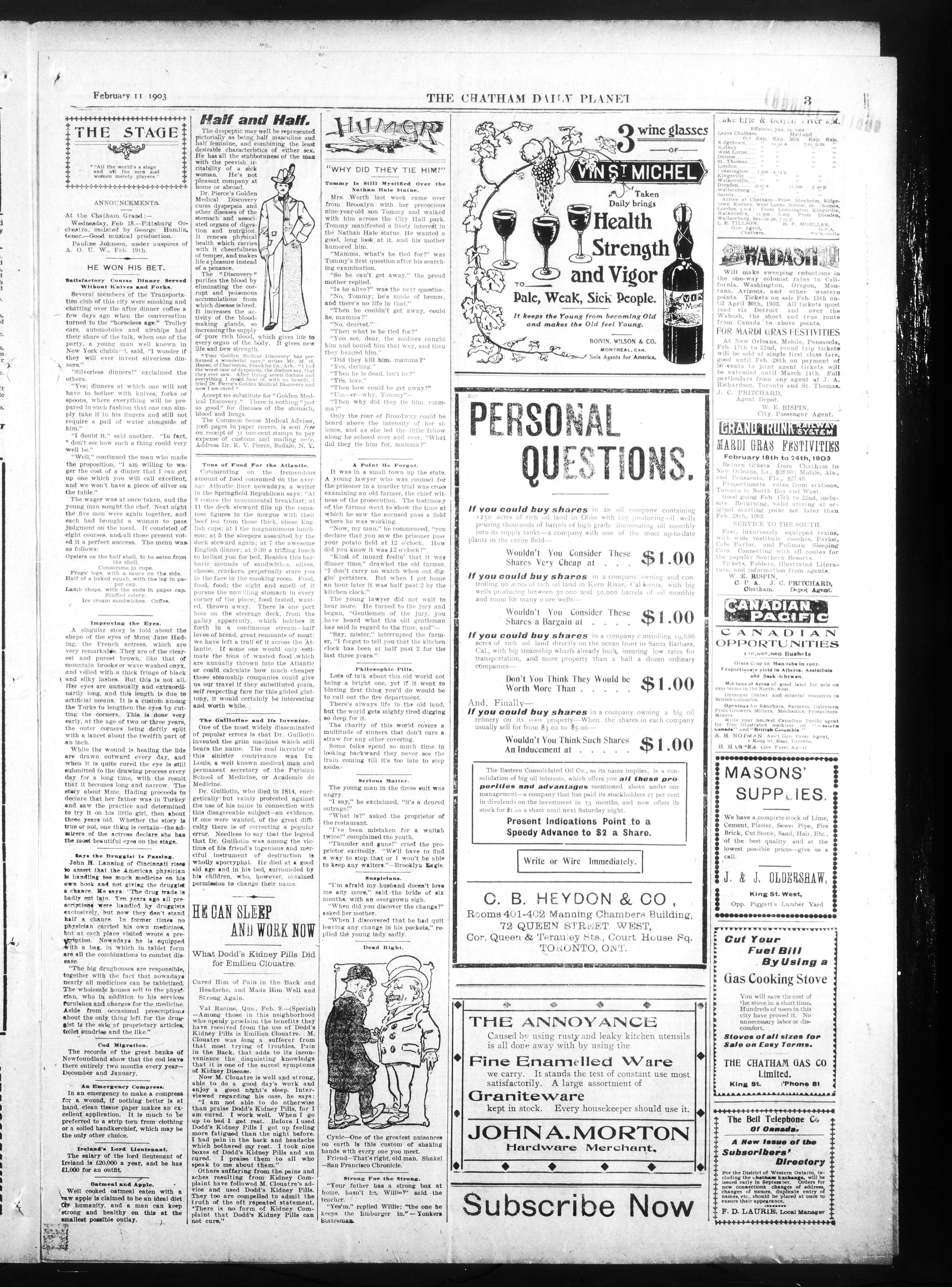 - The Chatham Daily Planet : Vol. XII, No. 51 (February 11, 1903)