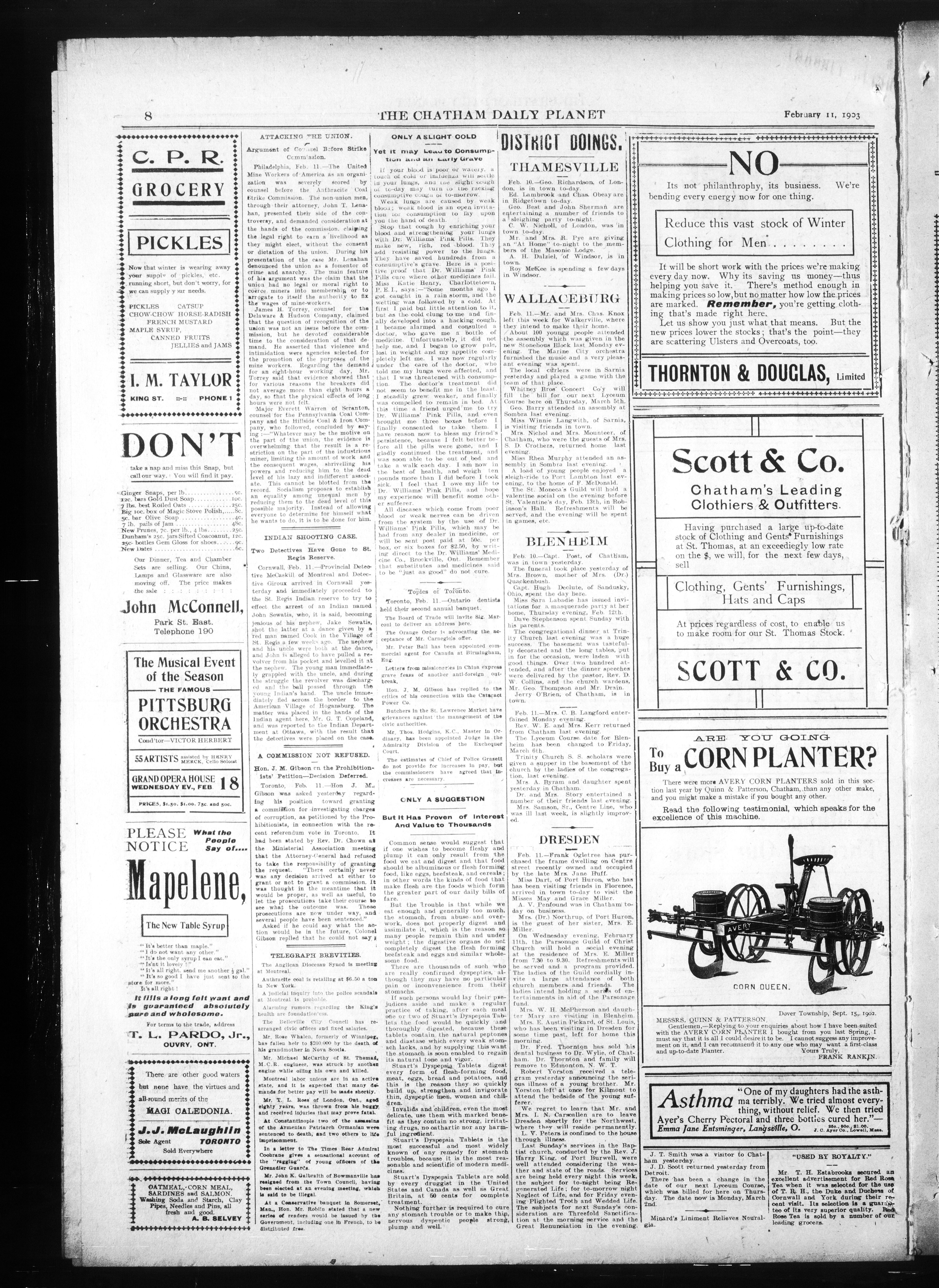 - The Chatham Daily Planet : Vol. XII, No. 51 (February 11, 1903)