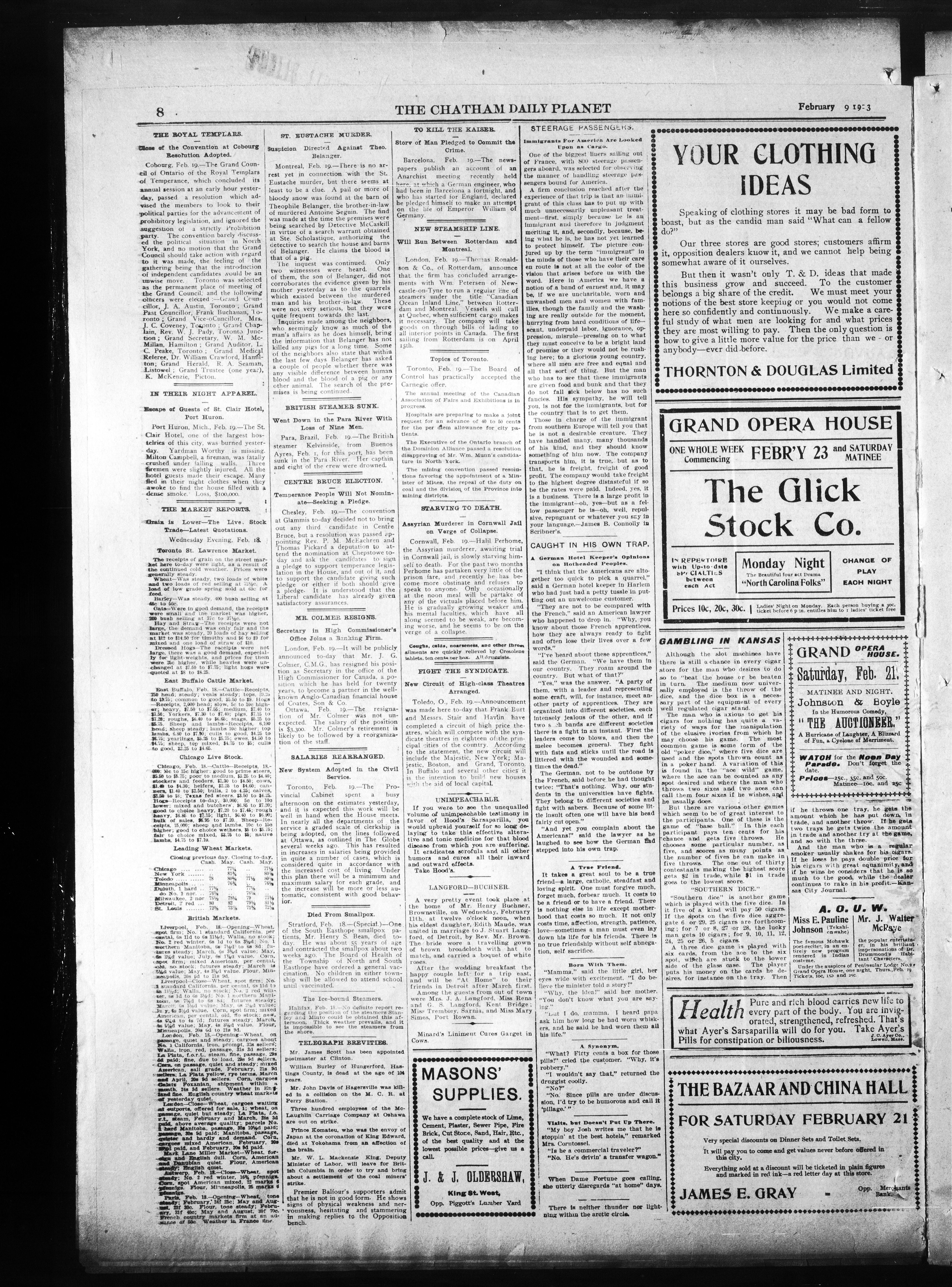 - The Chatham Daily Planet : Vol. XII, No. 58 (February 19, 1903)