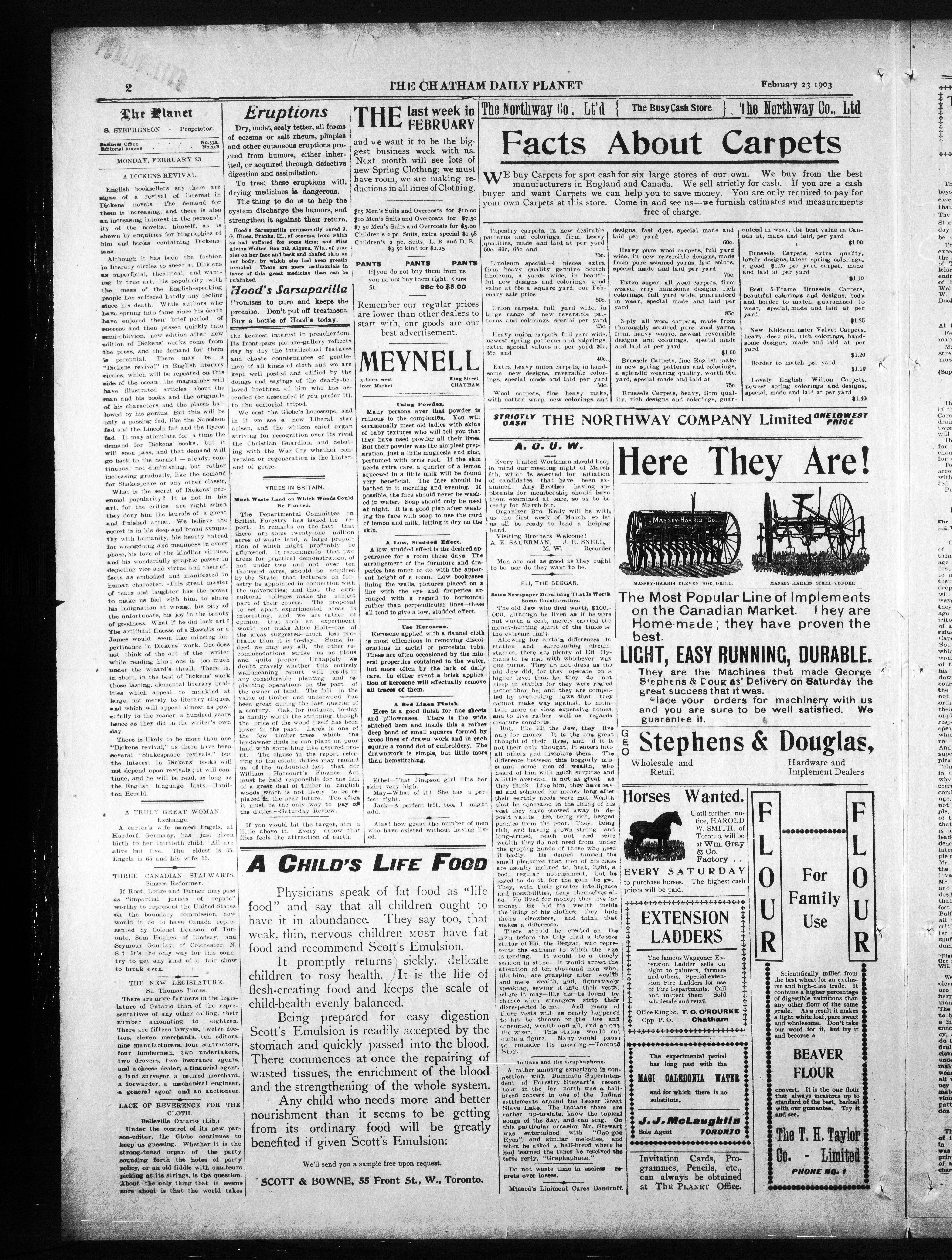 - The Chatham Daily Planet : Vol. XII, No. 61 (February 23, 1903)