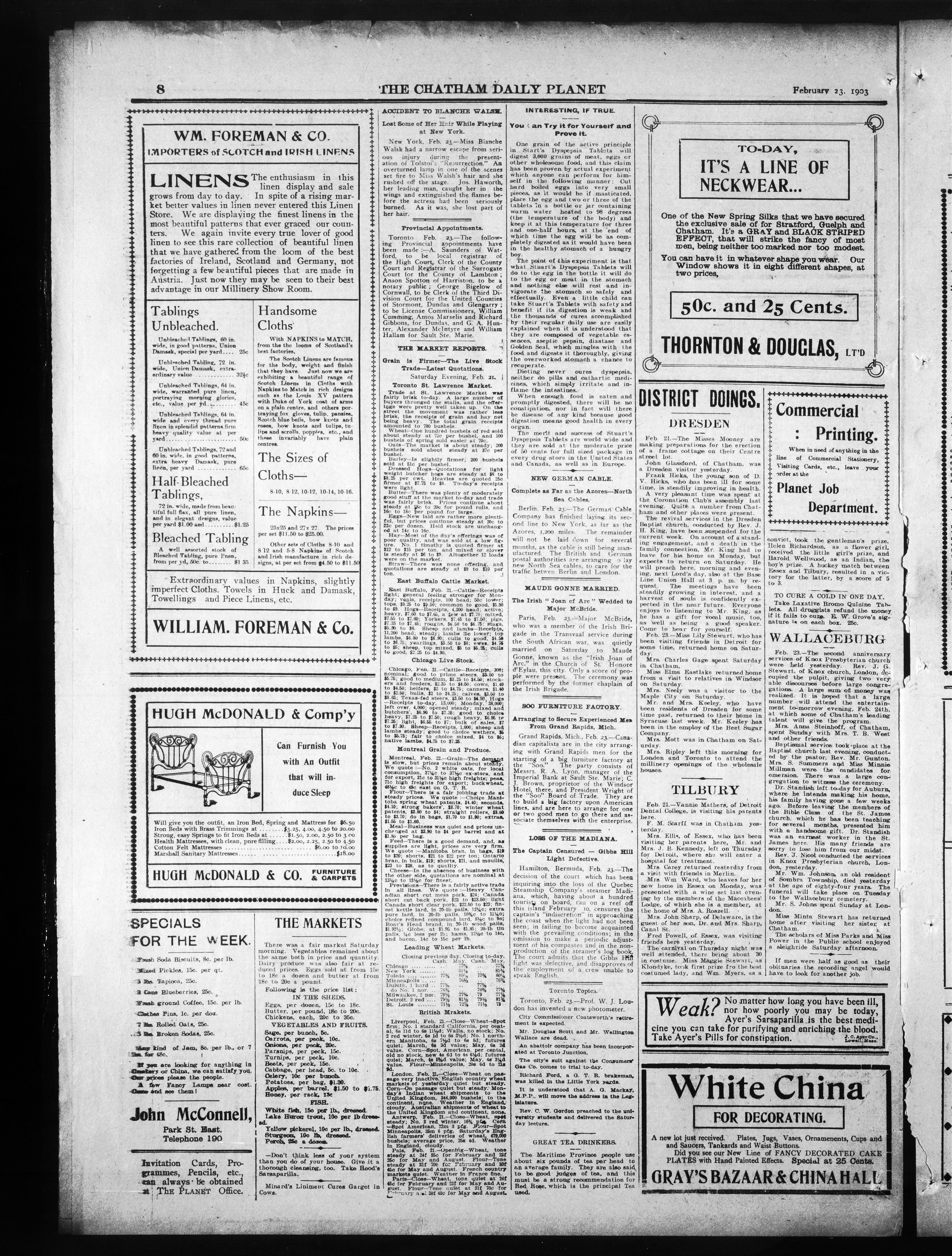 - The Chatham Daily Planet : Vol. XII, No. 61 (February 23, 1903)