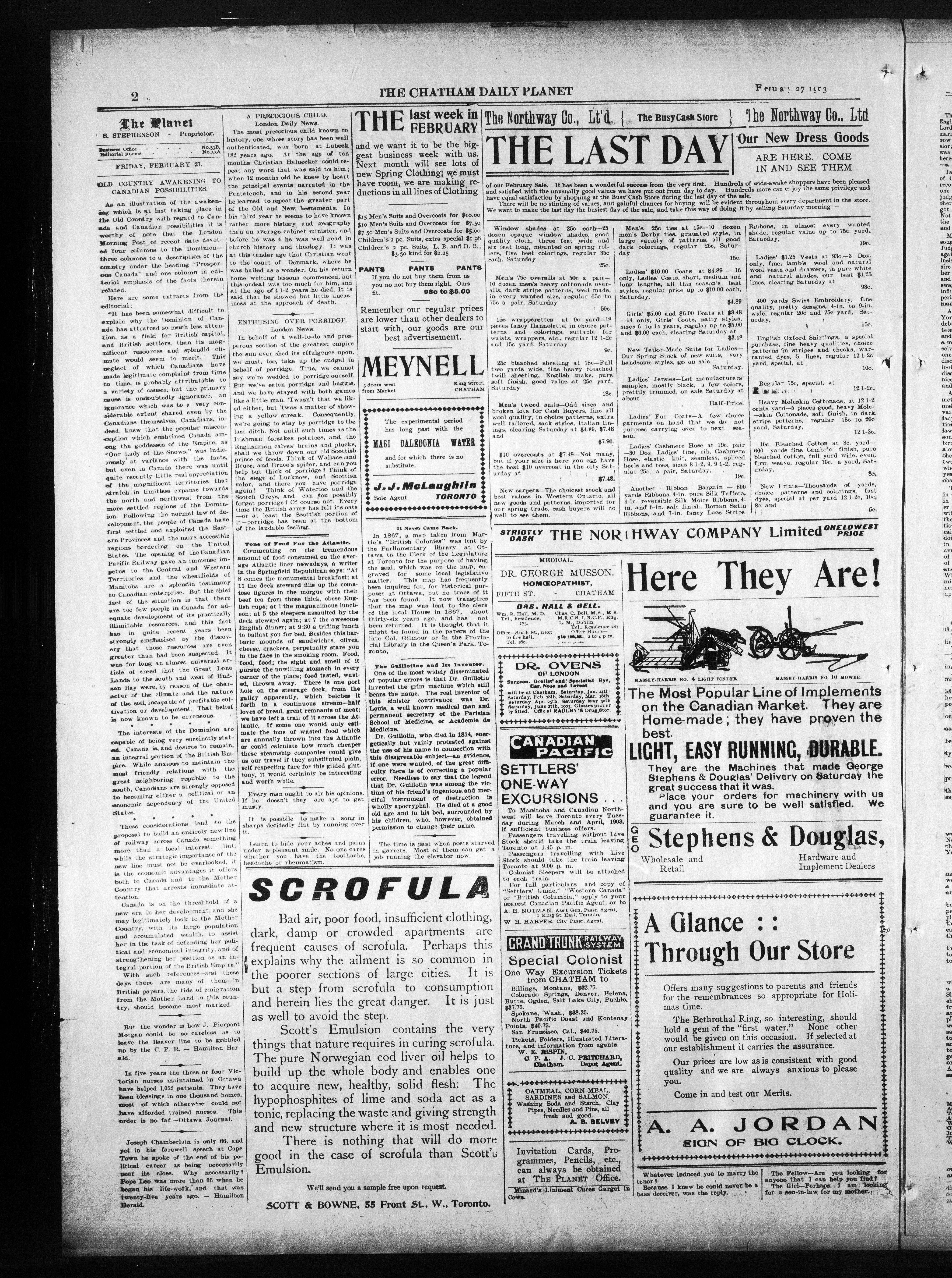 The Chatham Daily Planet : Vol. XII, No. 65 (February 27, 1903)