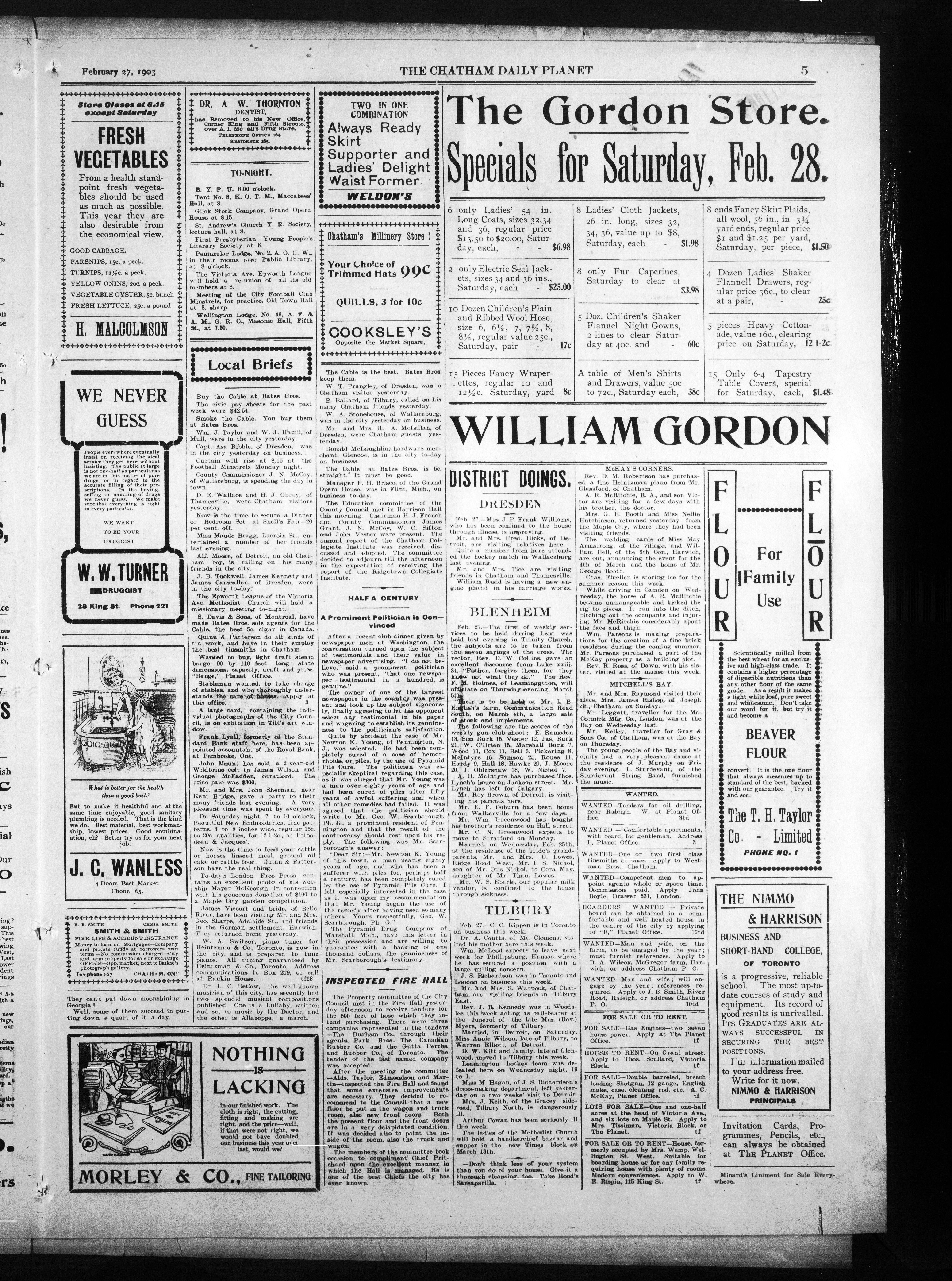- The Chatham Daily Planet : Vol. XII, No. 65 (February 27, 1903)
