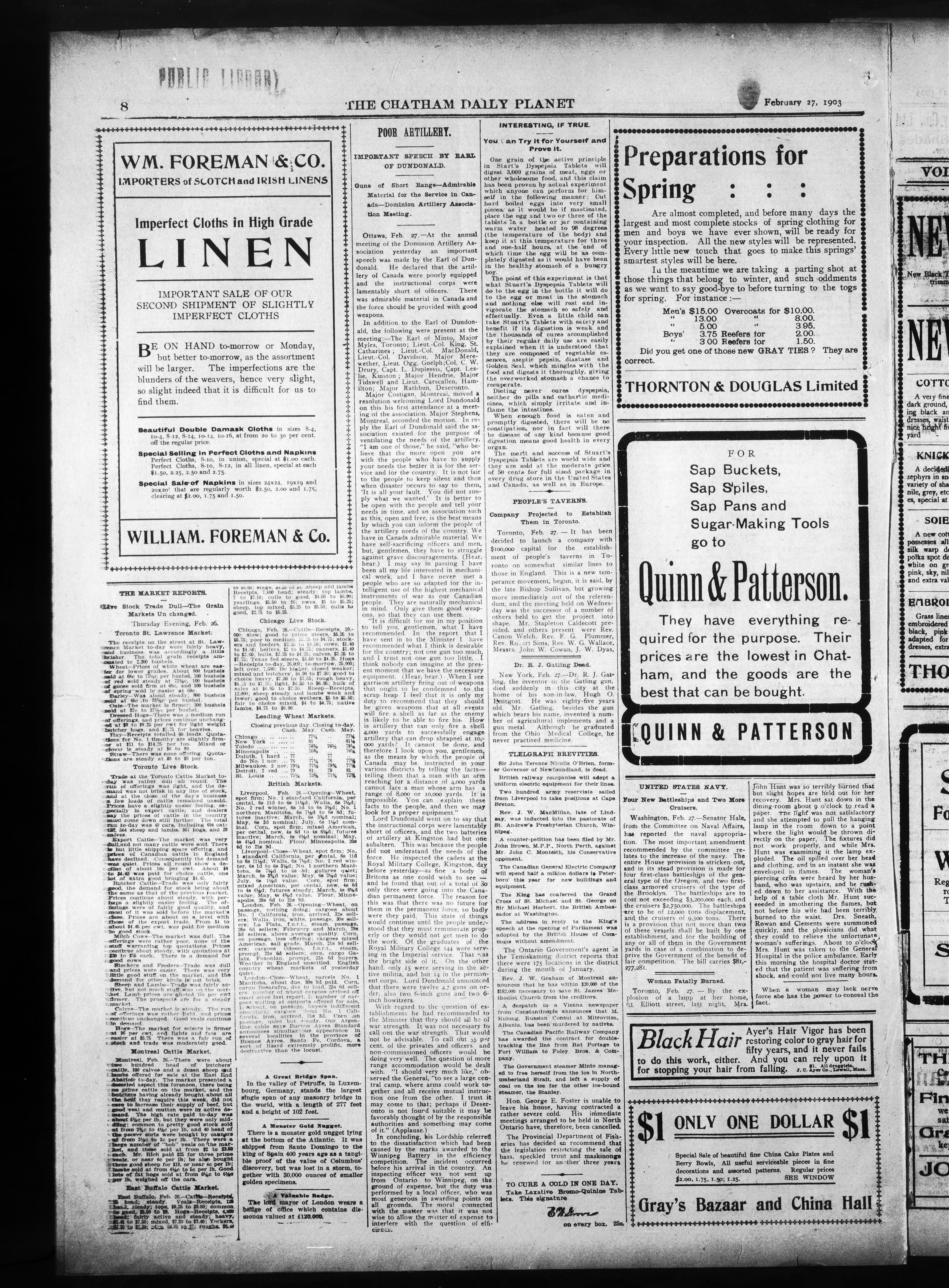 - The Chatham Daily Planet : Vol. XII, No. 65 (February 27, 1903)
