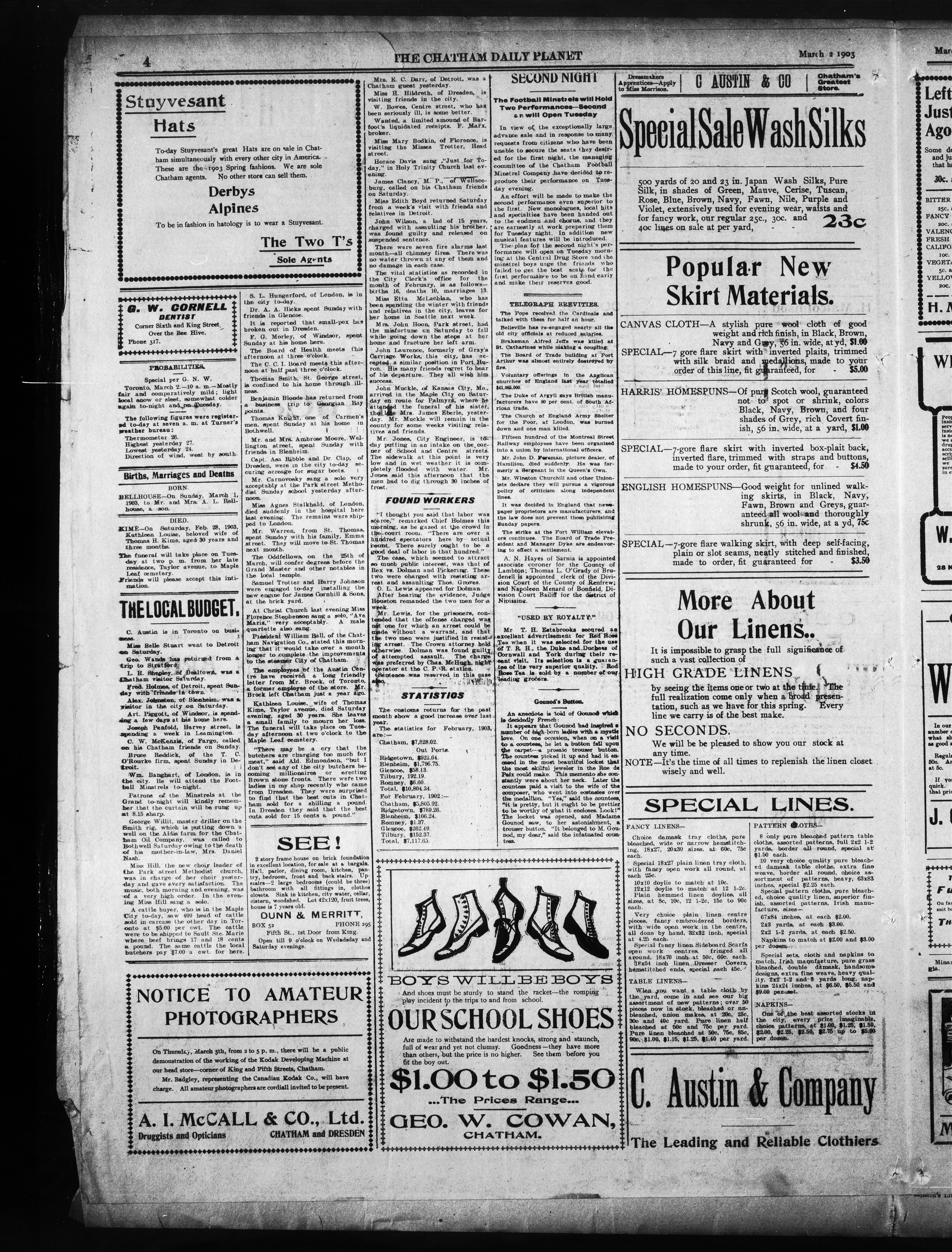 - The Chatham Daily Planet : Vol. XII, No. 67 (March 2, 1903)