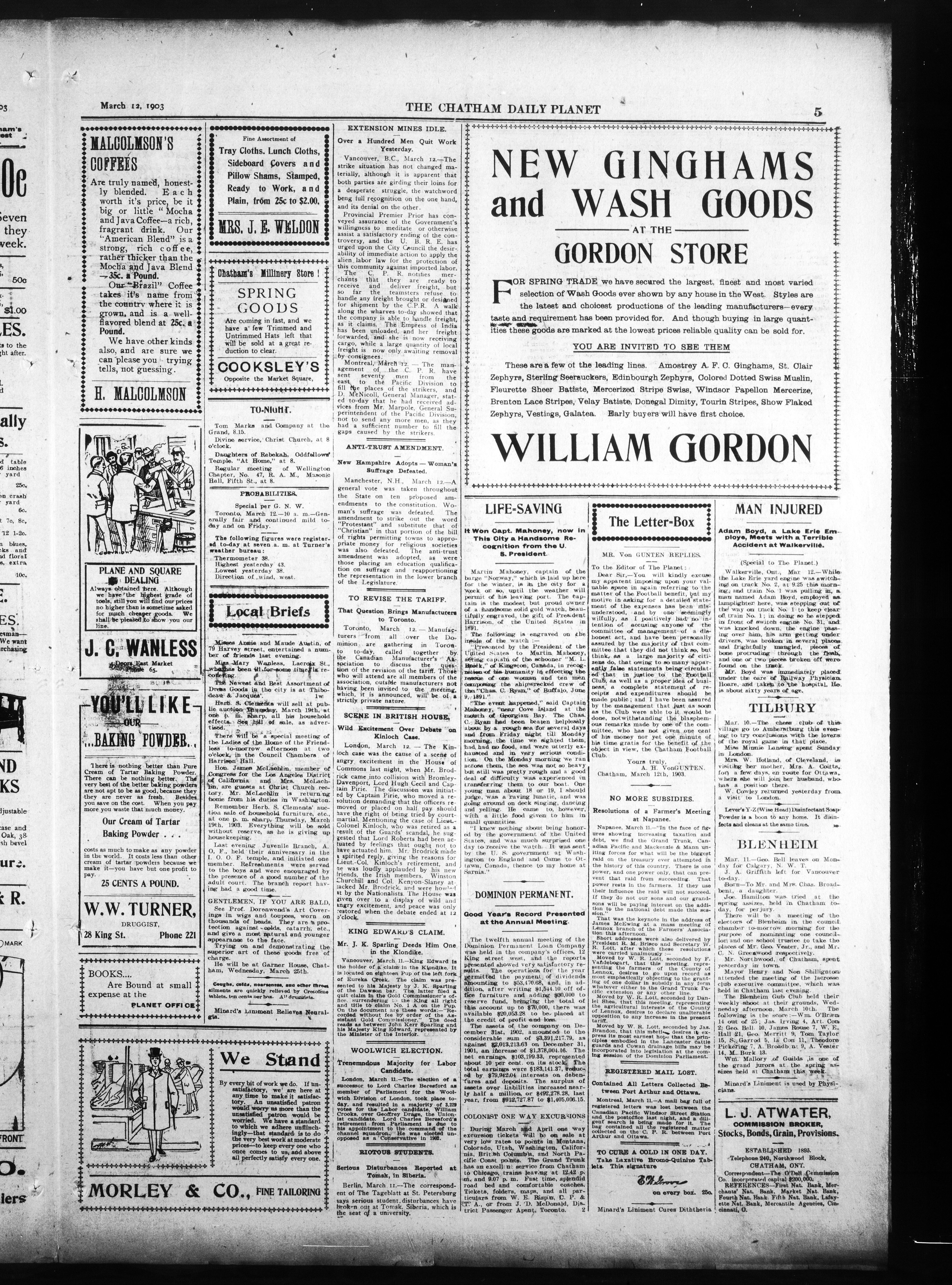 - The Chatham Daily Planet : Vol. XII, No. 76 (March 12, 1903)