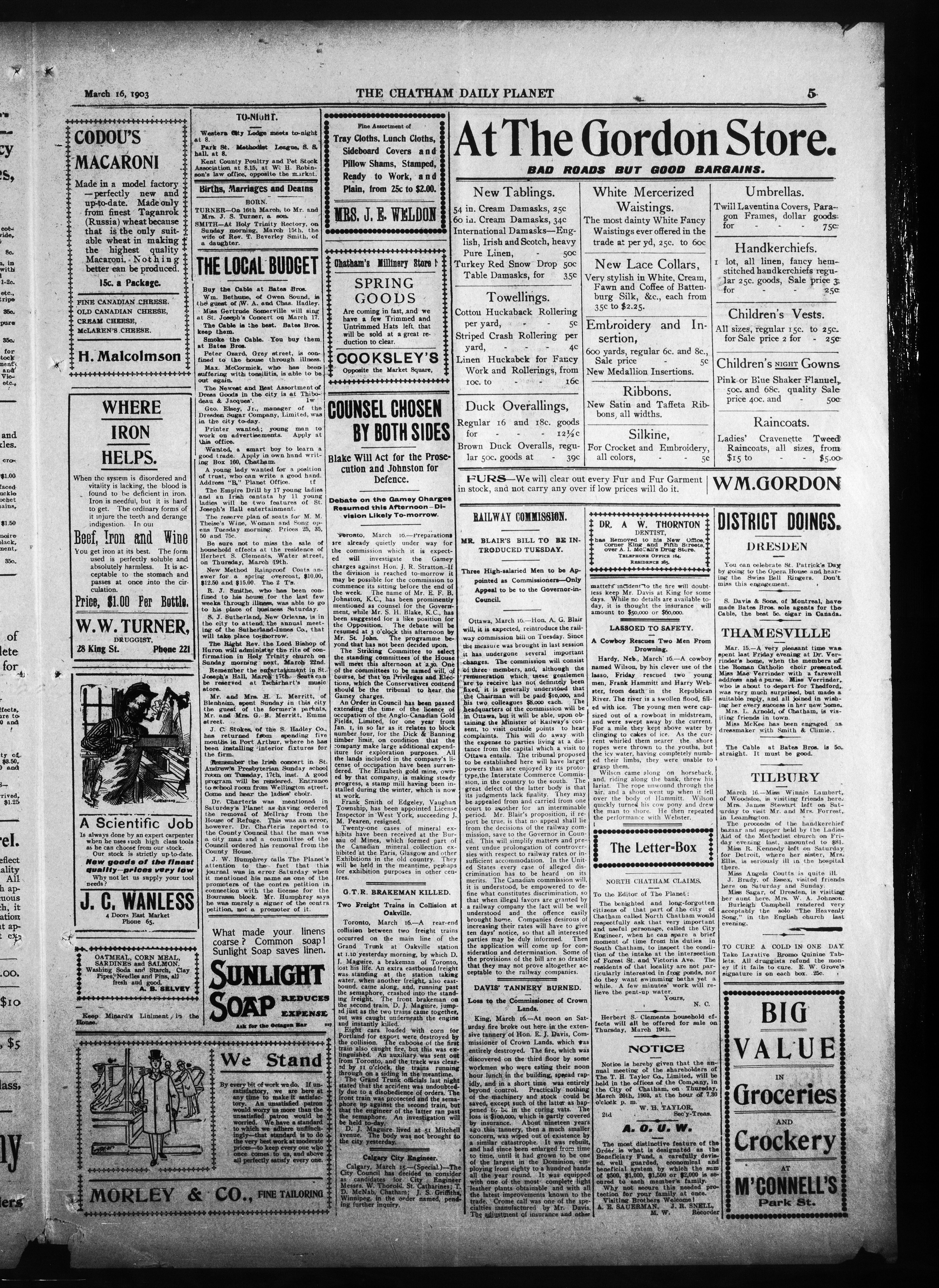 - The Chatham Daily Planet : Vol. XII, No. 79 (March 16, 1903)