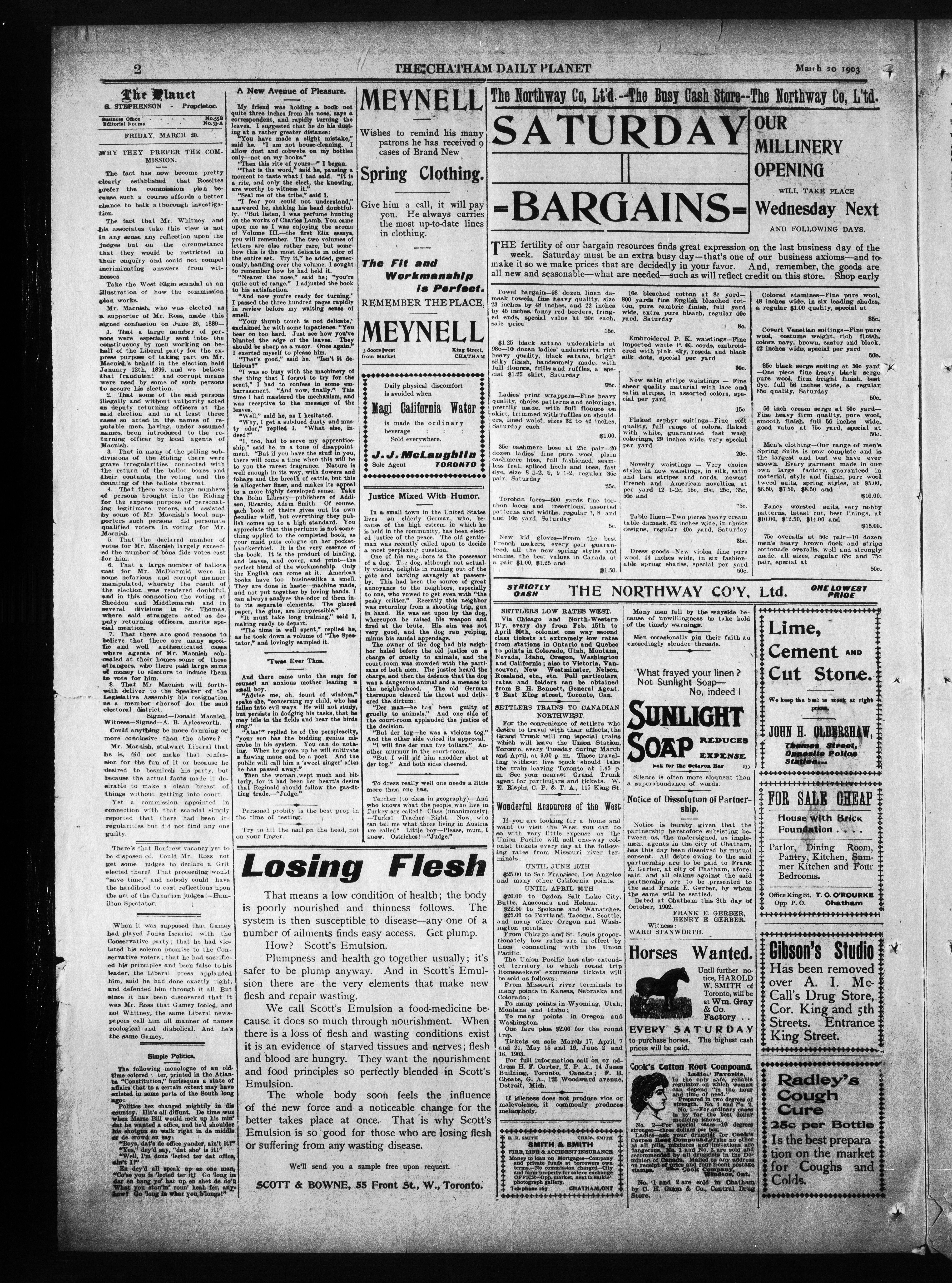 - The Chatham Daily Planet : Vol. XII, No. 81 (March 20, 1903)