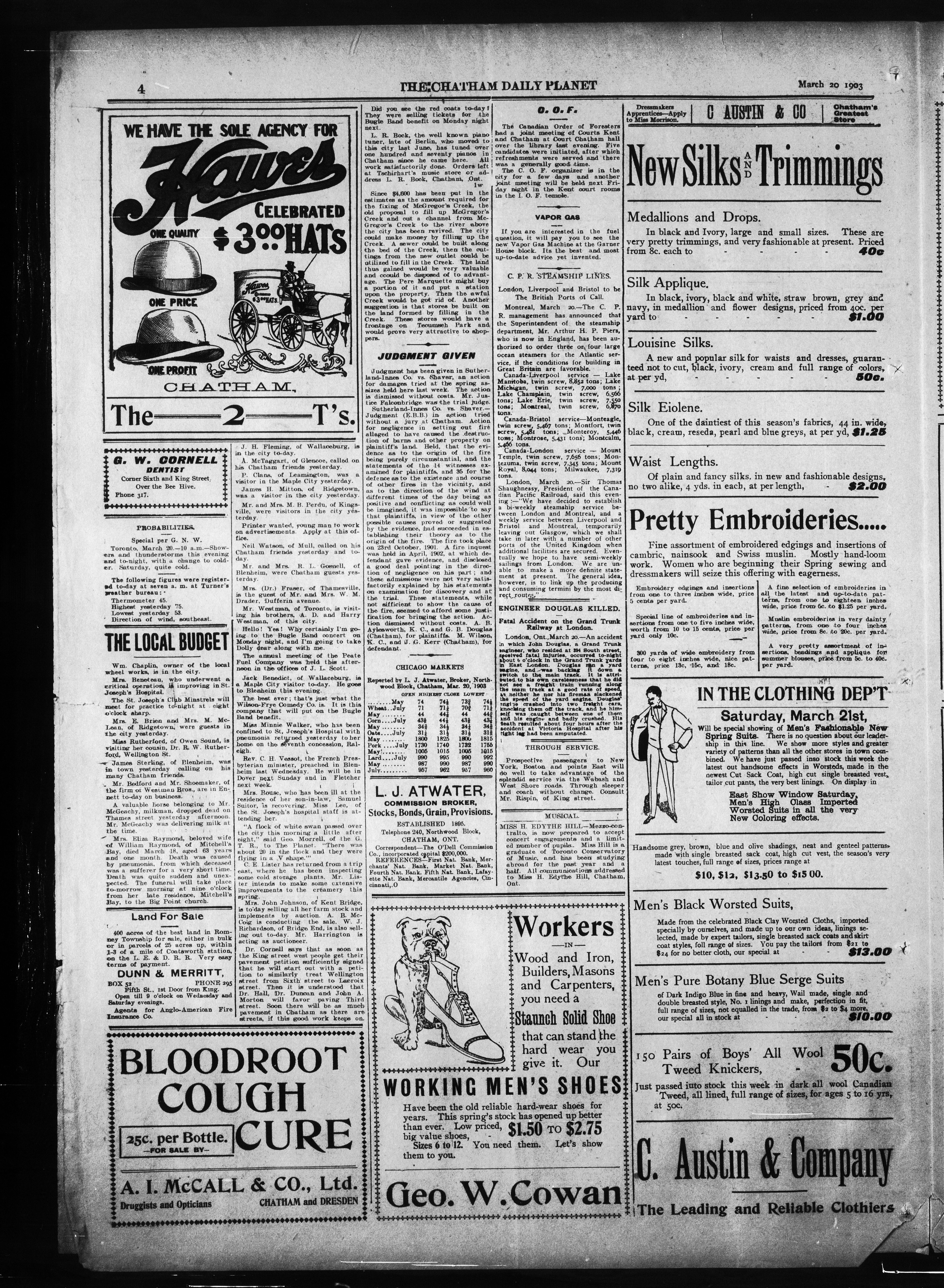 - The Chatham Daily Planet : Vol. XII, No. 81 (March 20, 1903)